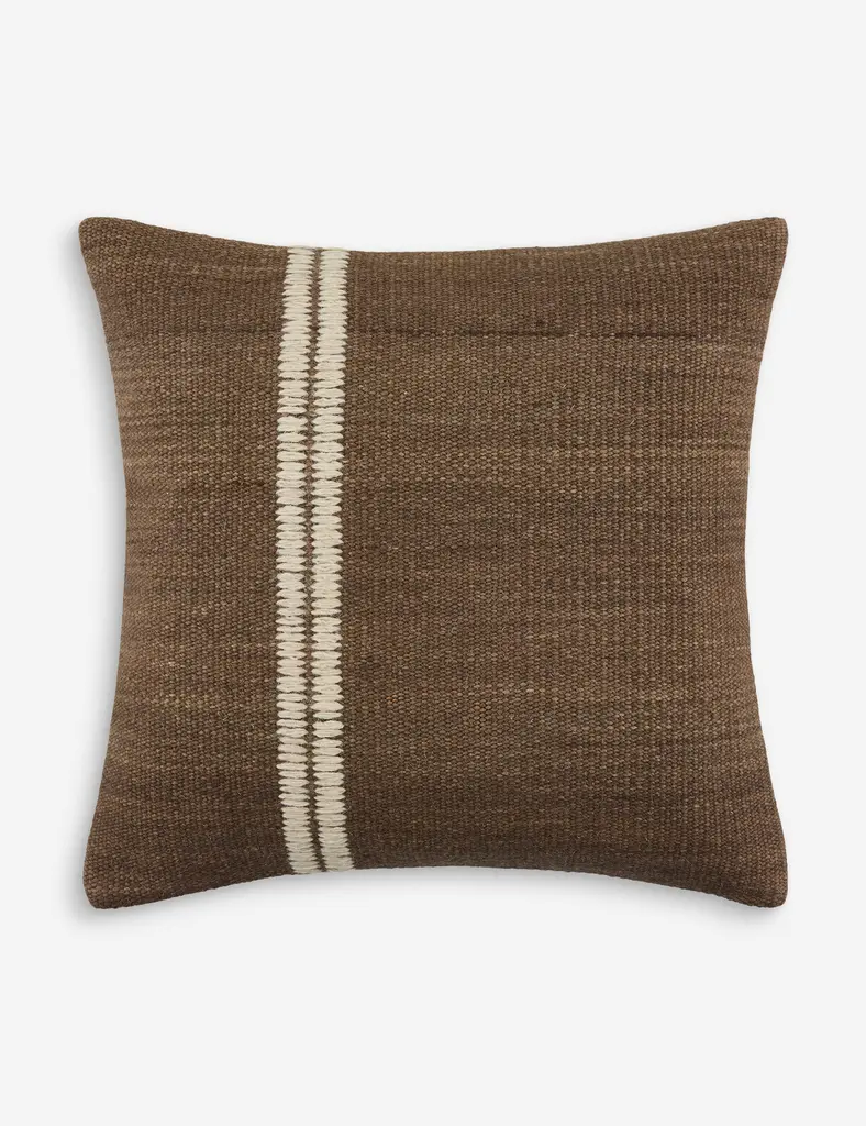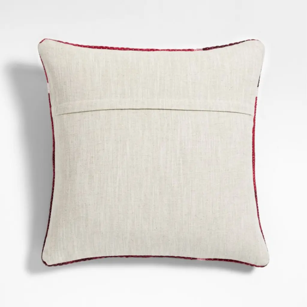 Featuring a kilim weave-a tight interweaving of warp and weft strands often used to make carpets-the red pillow riffs off the classic holiday plaid with an offset design, heathered color and the rustic texture characteristic of this celebrated weaving technique. Our exclusive pillows include your choice of a plush feather-down or lofty down-alternative insert.