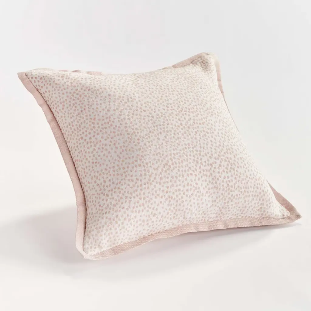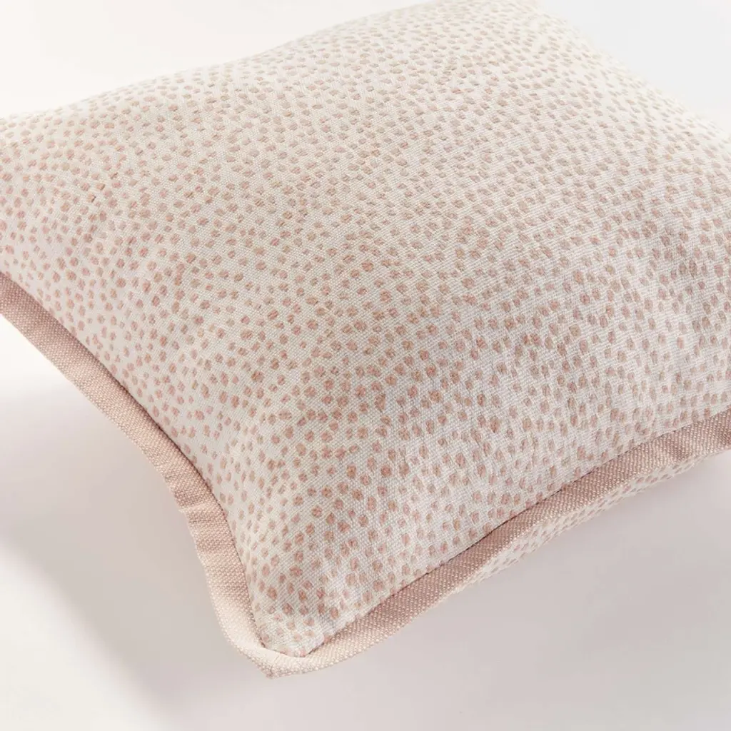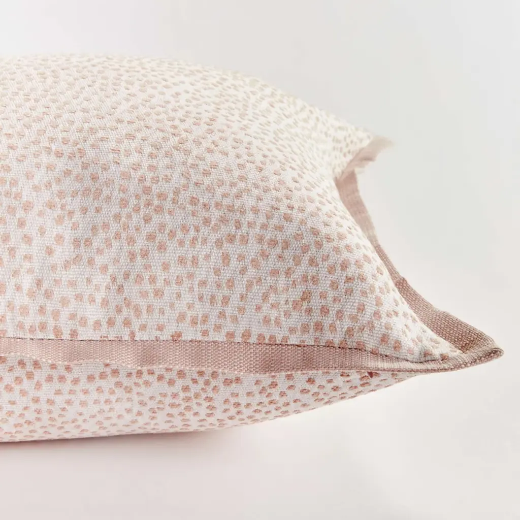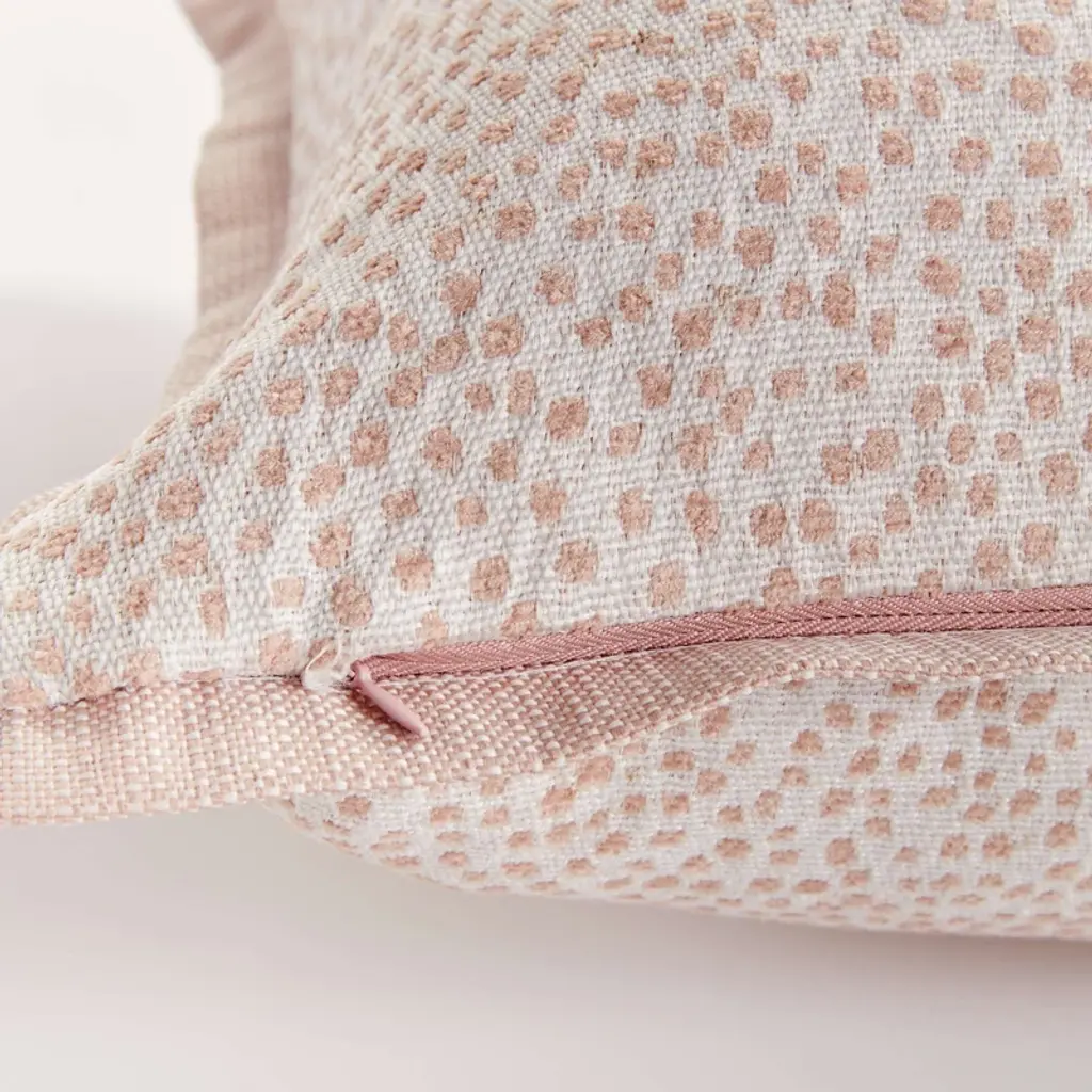 The indoor pillow that lives beautifully outdoors. Enjoy the upscale luxury and durability of Jacquard. With a woven blush and white pattern, it plays well with any palette. This pillow is weather resistant and responsibly made. Filled with 100% recycled fibers.
