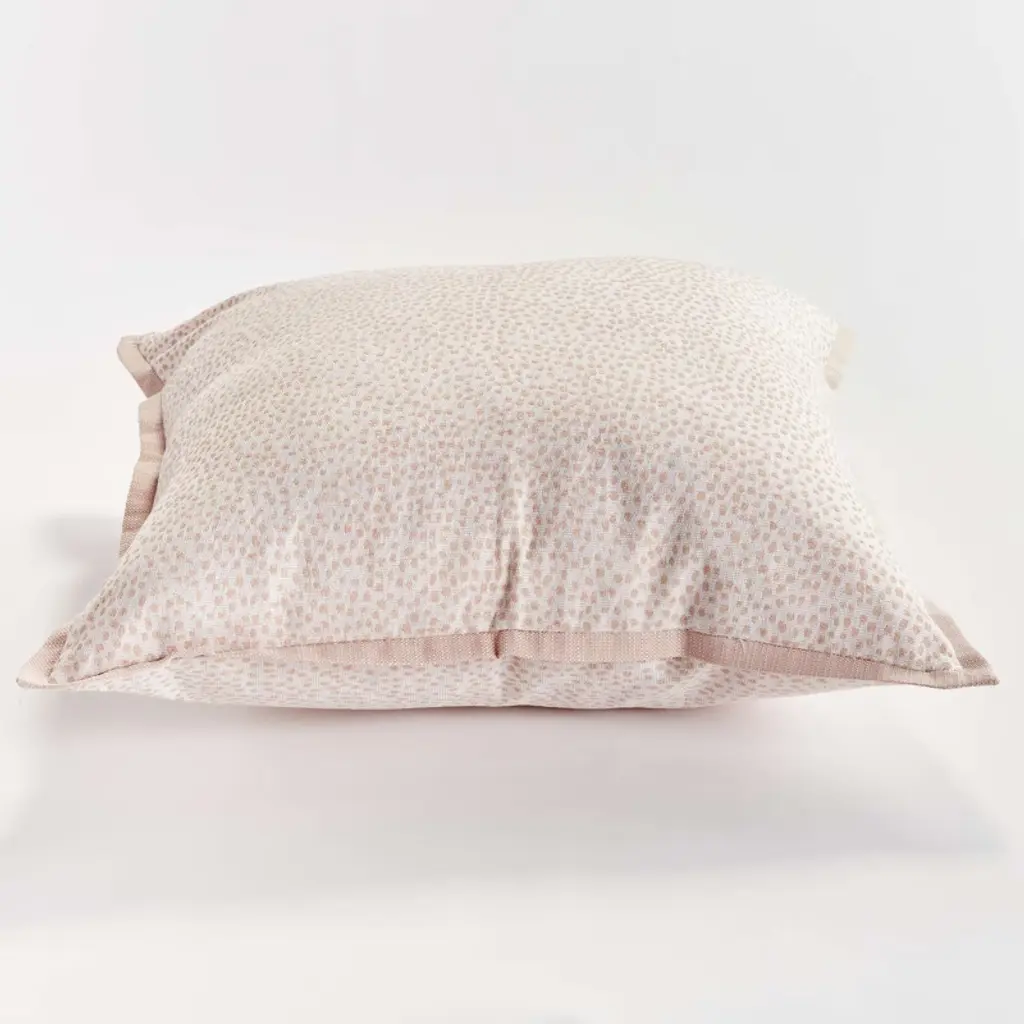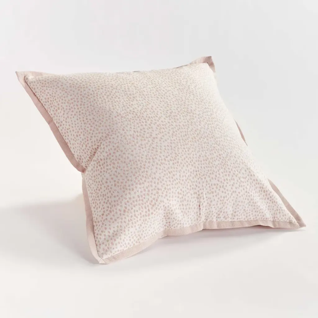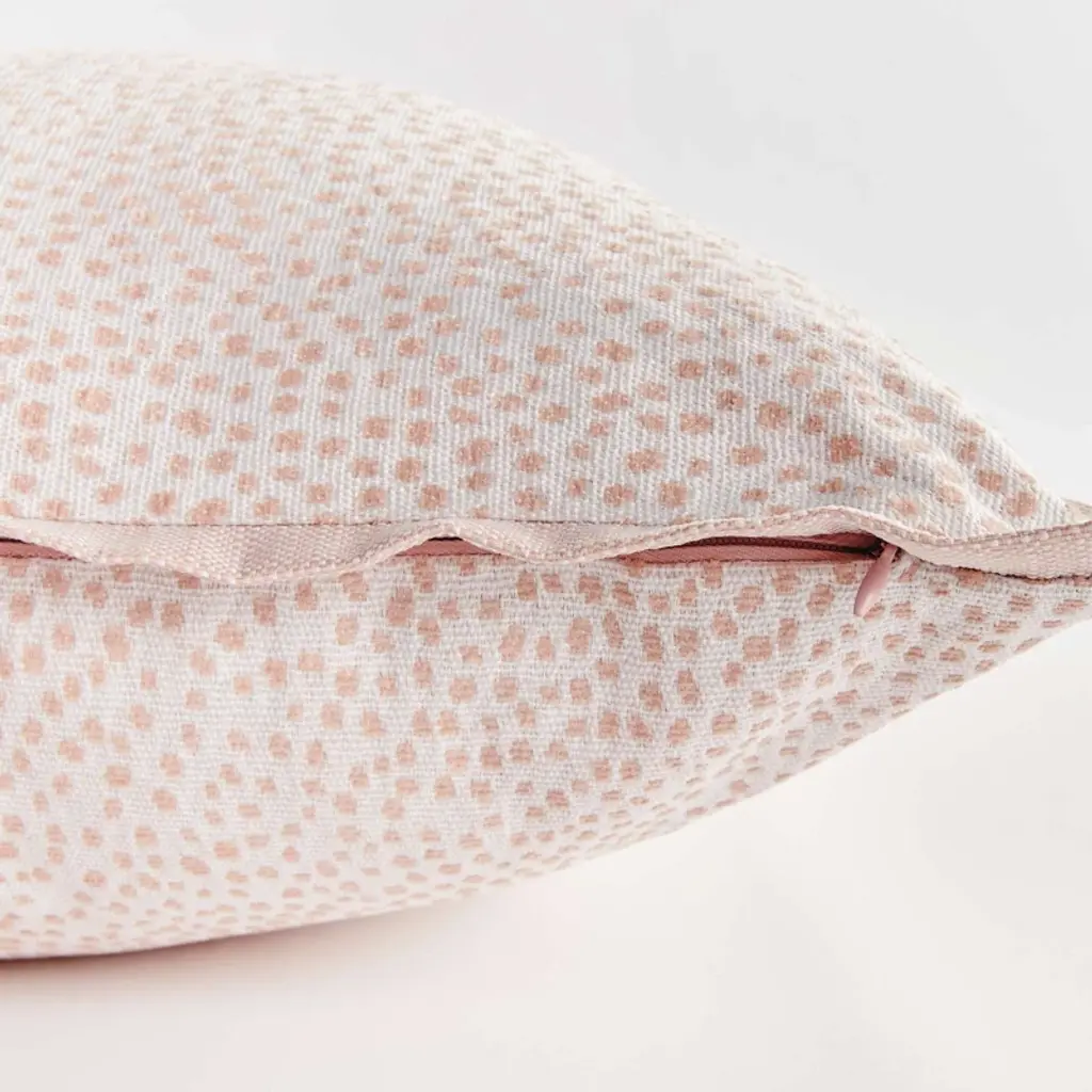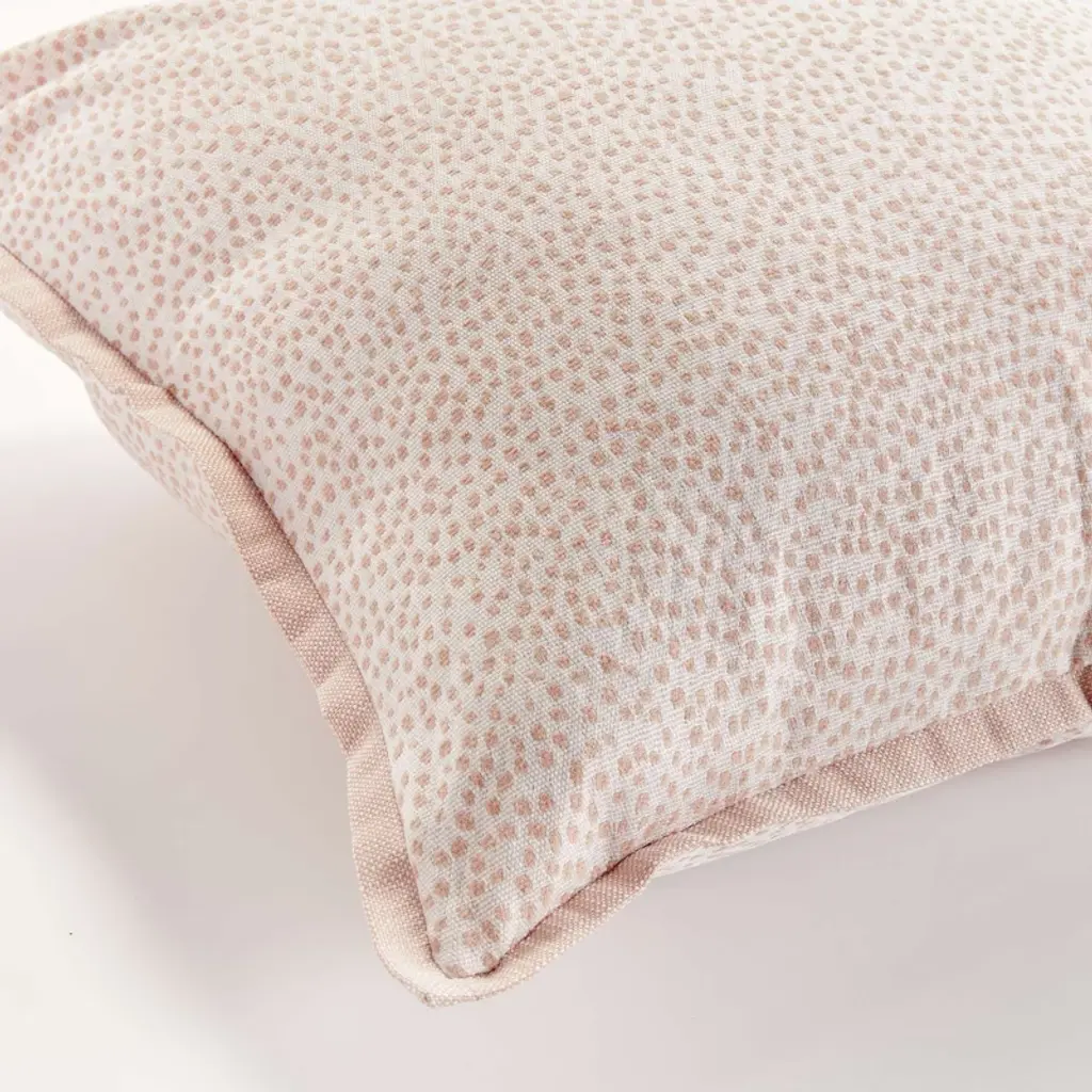 The indoor pillow that lives beautifully outdoors. Enjoy the upscale luxury and durability of Jacquard. With a woven blush and white pattern, it plays well with any palette. This pillow is weather resistant and responsibly made. Filled with 100% recycled fibers.