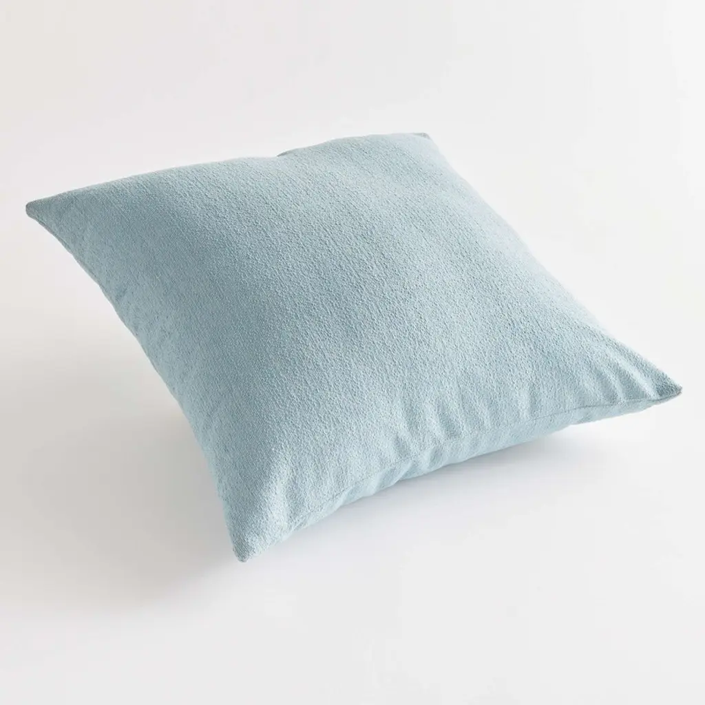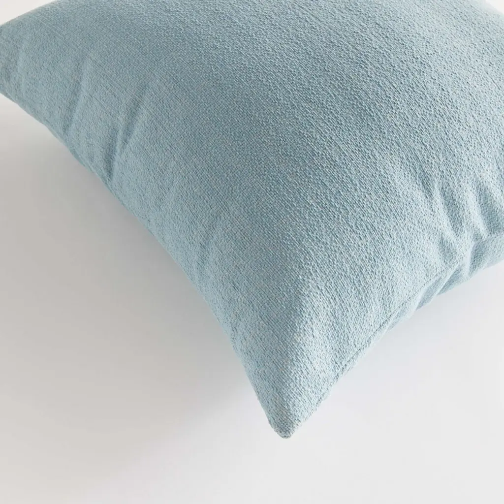 The indoor pillow that lives beautifully outdoors. Enjoy the upscale luxury and durability of Jacquard. With a woven spa blue pattern, it plays well with any palette. This pillow is weather resistant and responsibly made. Filled with 100% recycled fibers.