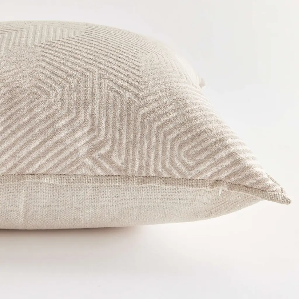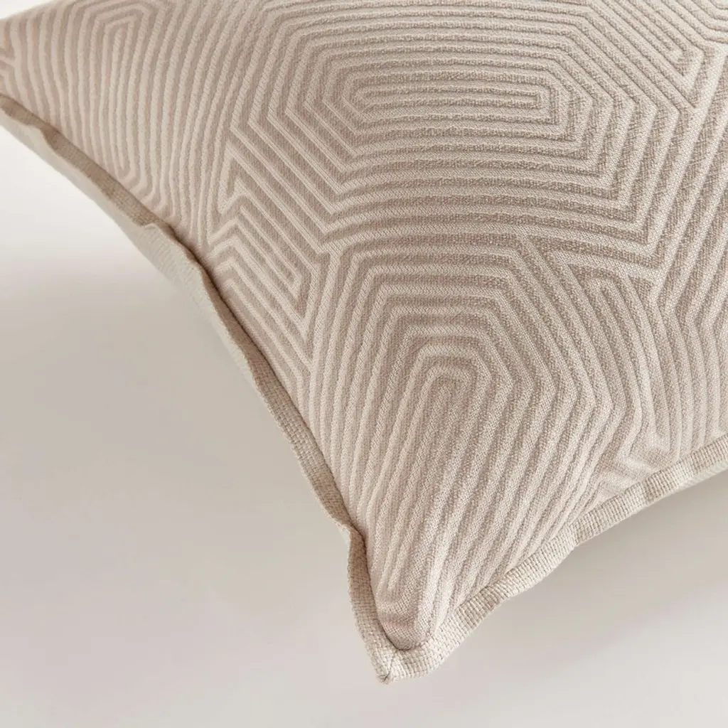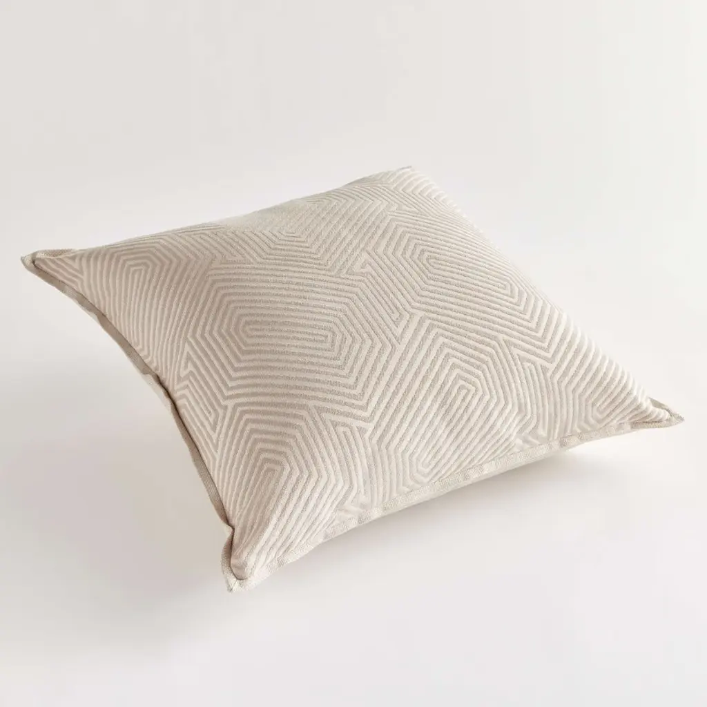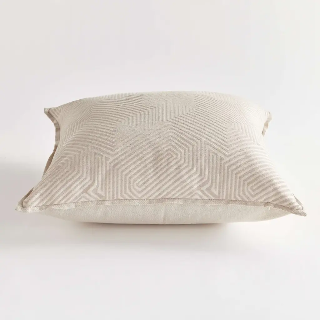 The indoor pillow that lives beautifully outdoors. Enjoy the upscale luxury and durability of Jacquard. With a woven light khaki tone, it plays well with any palette. This pillow is weather resistant and responsibly made. Filled with 100% recycled fibers.
