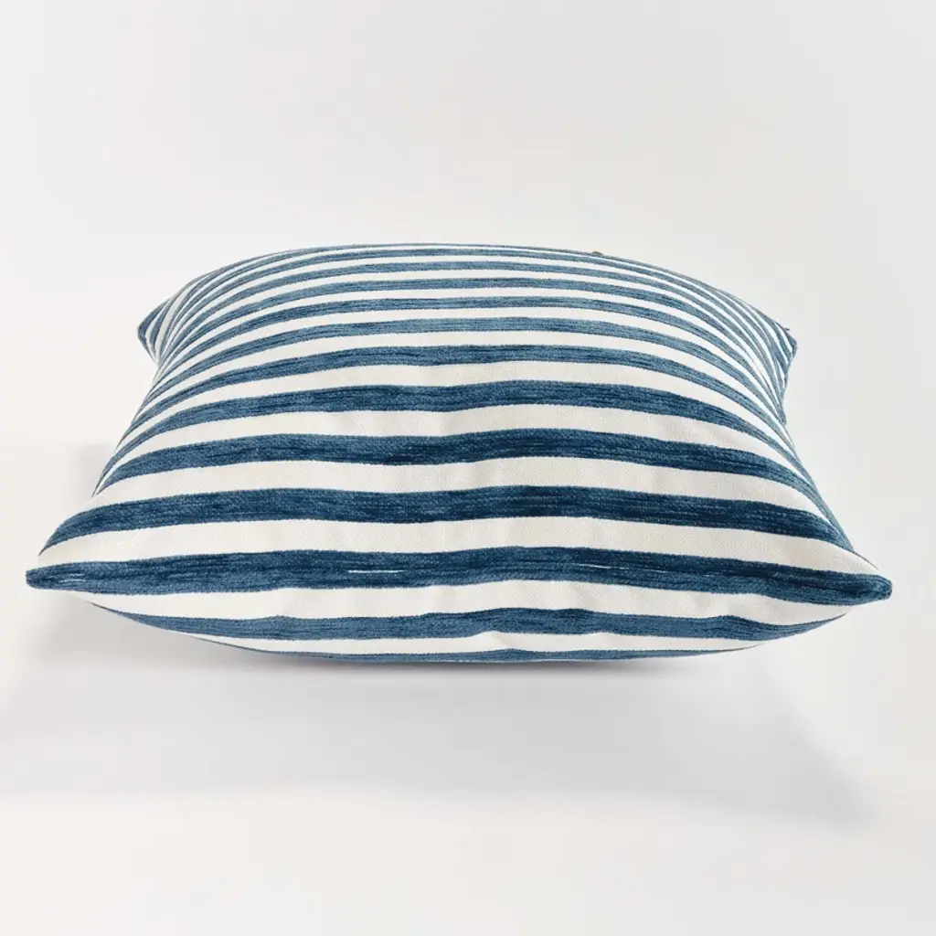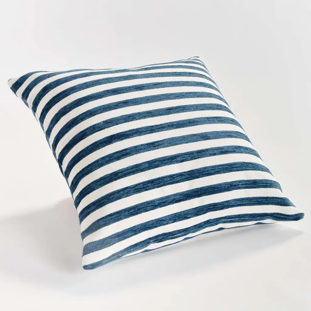 The indoor pillow that lives beautifully outdoors. Enjoy the upscale luxury and durability of Jacquard. With a bold striped pattern, it plays well with any palette. This pillow is weather resistant and responsibly made. Filled with 100% recycled fibers.