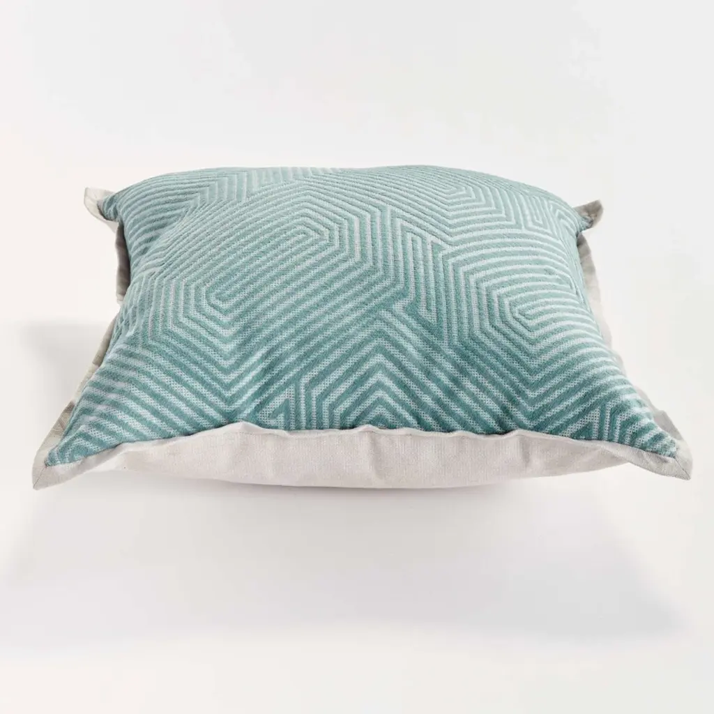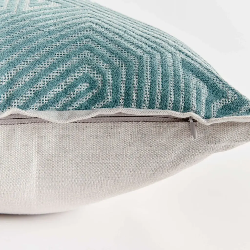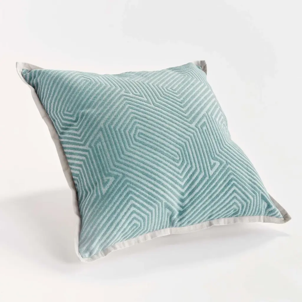 The indoor pillow that lives beautifully outdoors. Enjoy the upscale luxury and durability of Jacquard. With a modern french blue geometric pattern, it adds a pop of rich color to any palette. This pillow is weather resistant and responsibly made. Filled with 100% recycled fibers.