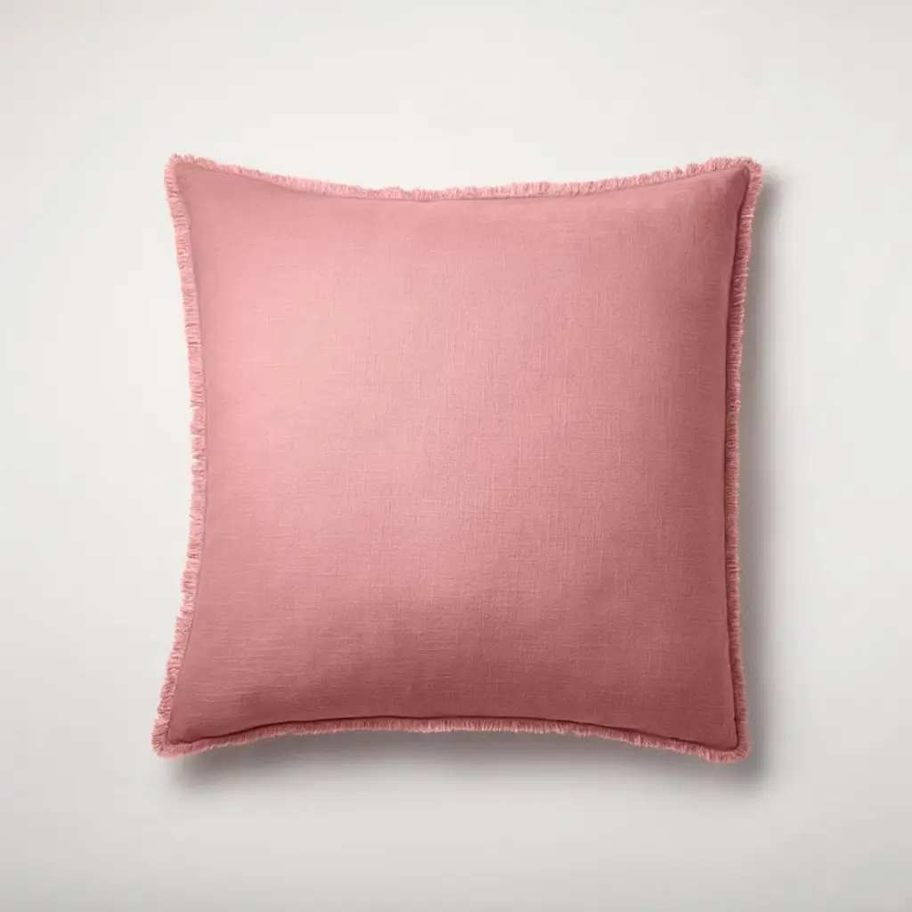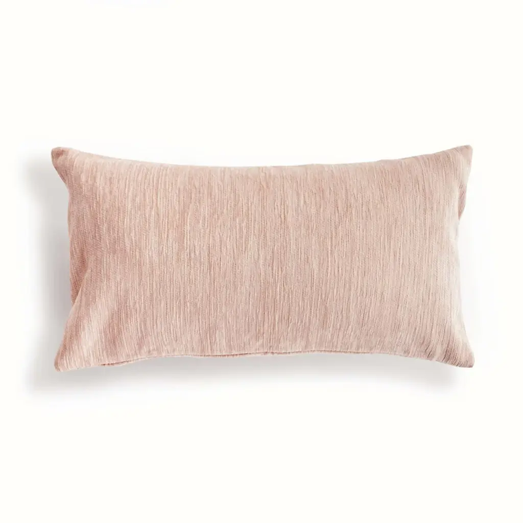 The indoor pillow that lives beautifully outdoors. Enjoy the upscale luxury and durability of Jacquard. With a woven blush pattern, it plays well with any palette. This pillow is weather resistant and responsibly made. Filled with 100% recycled fibers.