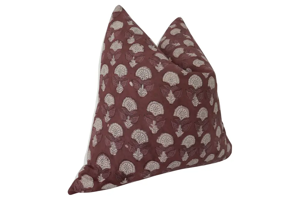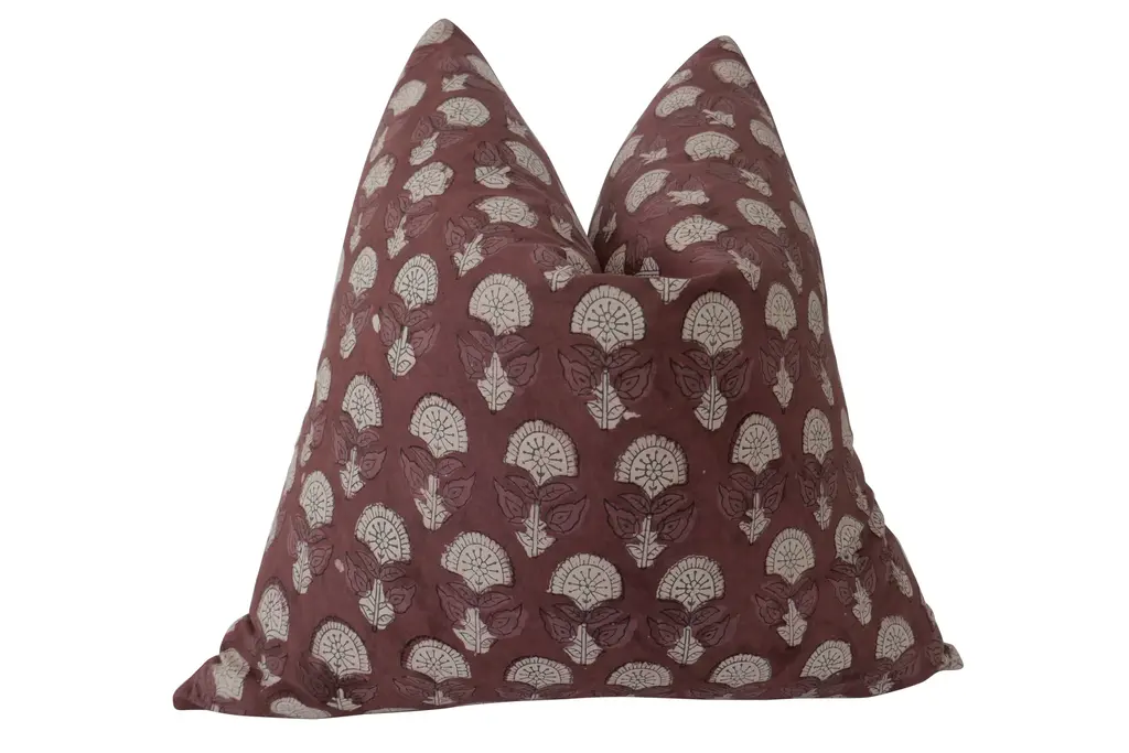 Plum Hand-block Floral & Linen Pillow
