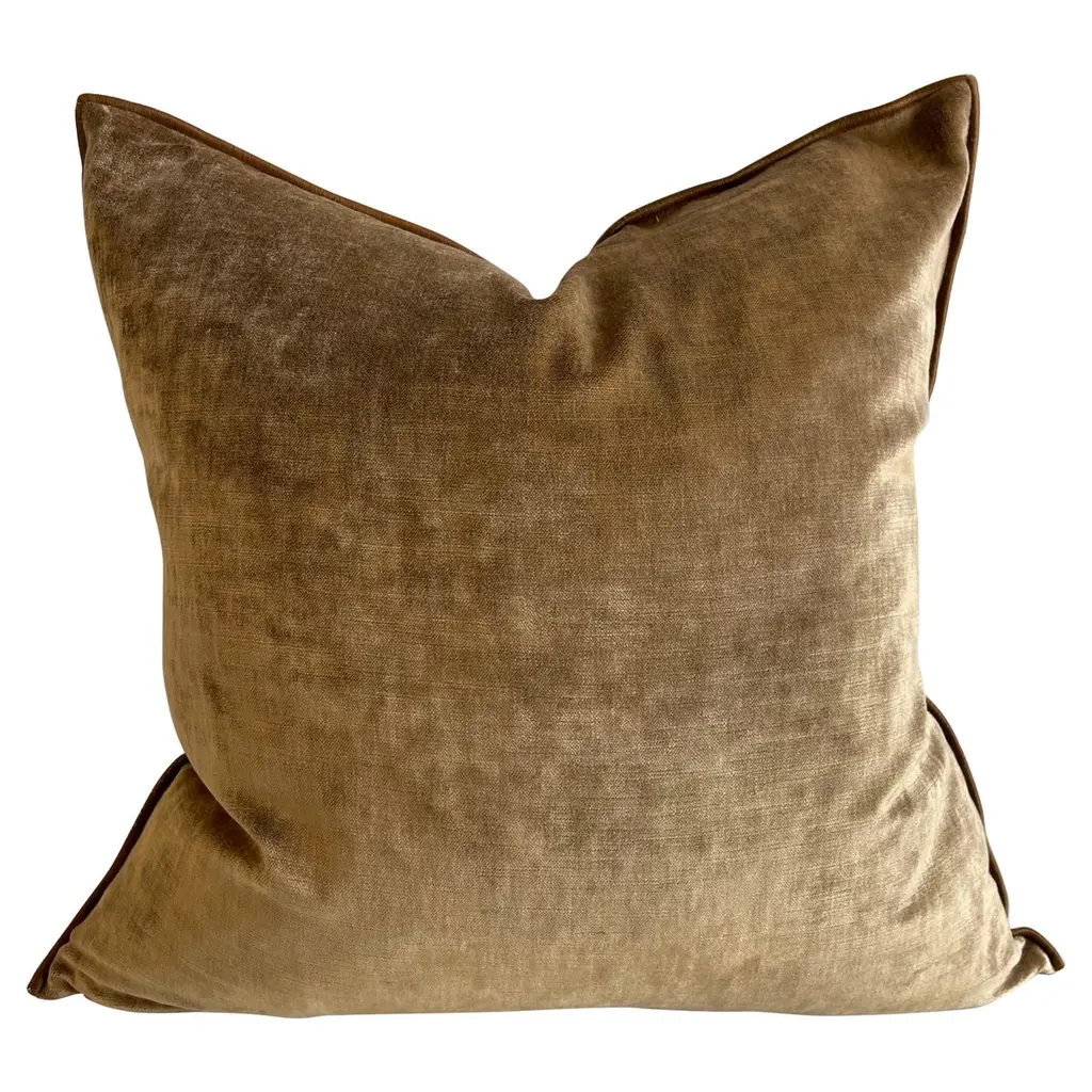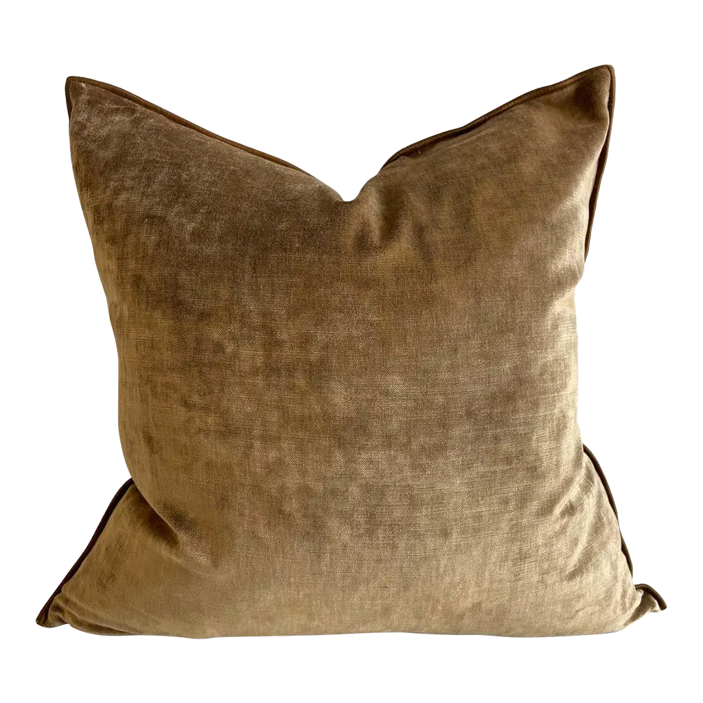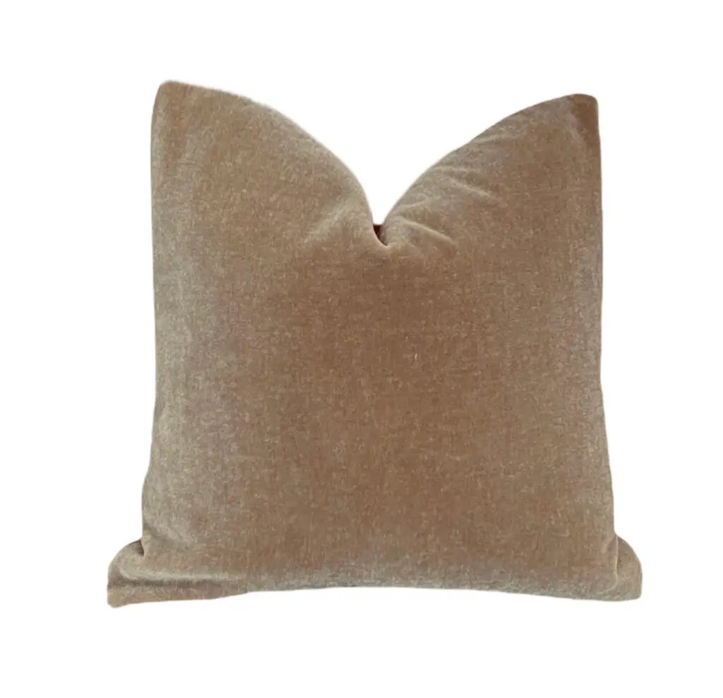 Custom made mohair pillows in Tan Camel. This genuine 100% mohair is plush & comfy, a substantial weight, and wears like iron. The same fabric is on both sides, and pillows are filled with plump 10/90 down/feather inserts. Hidden zipper closure at the bottom. Dry clean. *When ordering multiple items we will combine orders into as few boxes as possible.