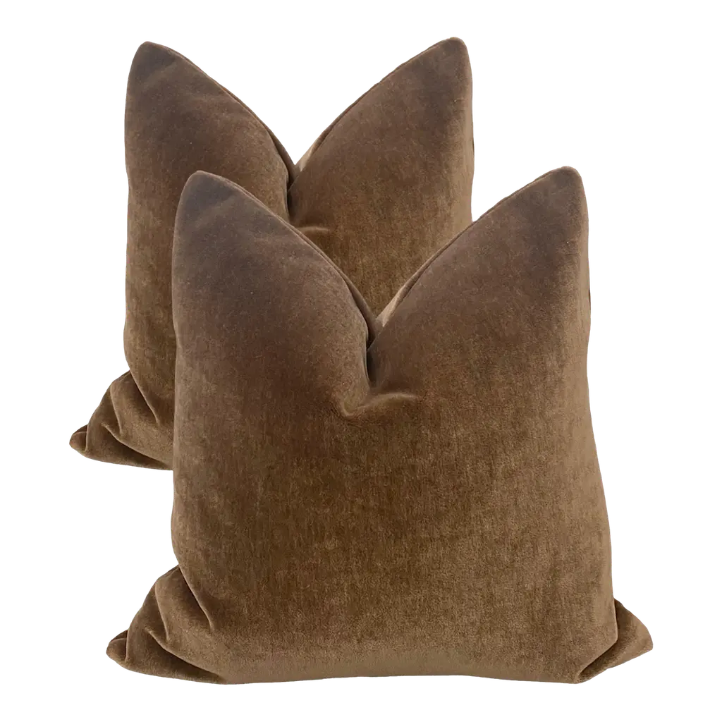 Plush 24" Tan Camel Down Filled Mohair Pillows - A Pair