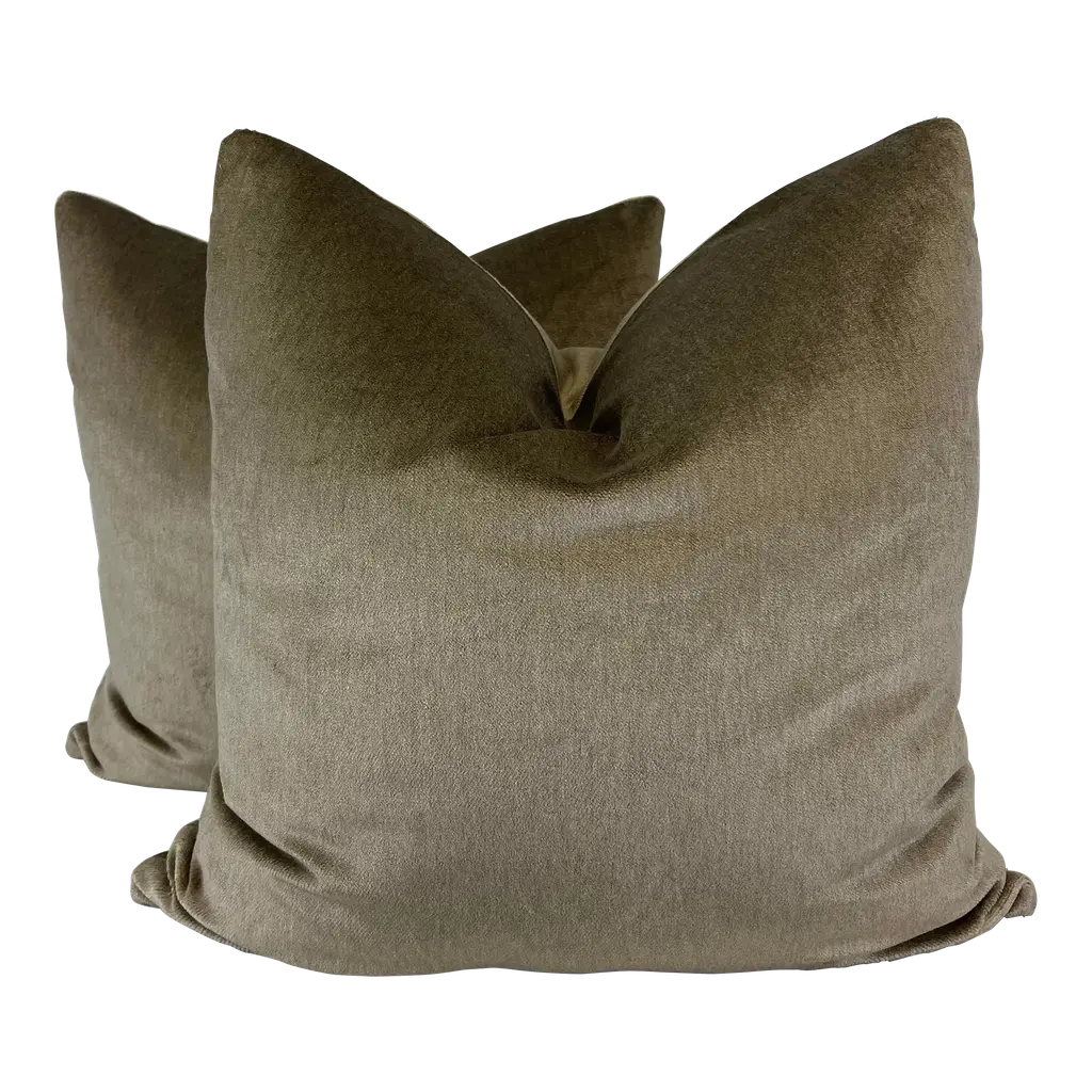 Plush Celadon Down Filled Mohair Pillows - A Pair