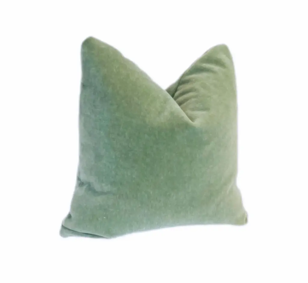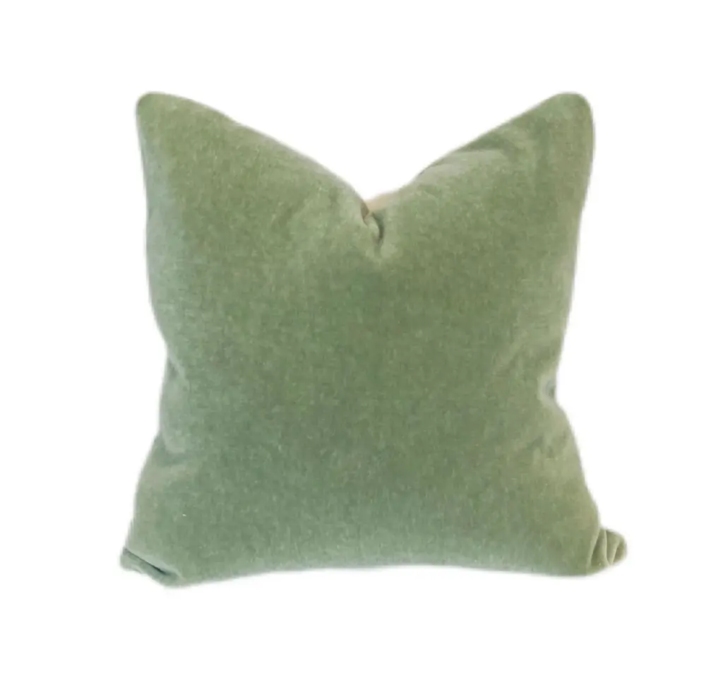 Custom made mohair pillows in Celadon. This genuine 100% mohair is plush & comfy, a substantial weight, and wears like iron. The same fabric is on both sides, and pillows are filled with plump 10/90 down/feather inserts. Hidden zipper closure at the bottom. Dry clean. *When ordering multiple items we will combine orders into as few boxes as possible.