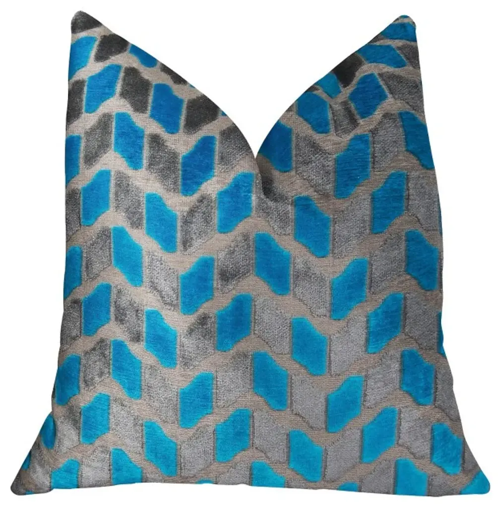 Plutus Deep Sea Dive Handmade Throw Pillow, (Double sided 24" x 24")Descriptions:Plutus Deep Sea Dive Handmade Throw Pillow, (Double sided 24" x 24")Features: Hypoallergenic Down Alternative Polyfill50%Viscose/50%PolyesterHandmade in USATurquoise,Gray