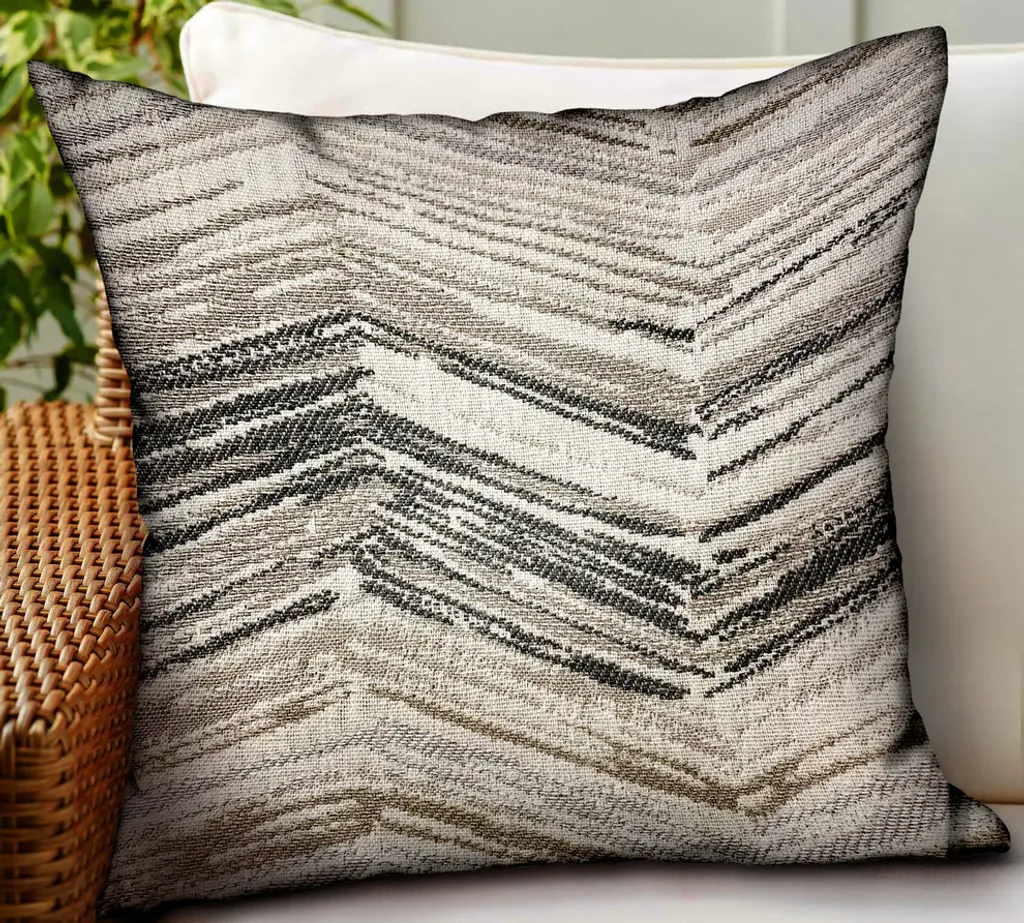 Plutus Jagged Sand Brown Geometric Luxury Outdoor/indoor Throw Pillow, 24"x24"