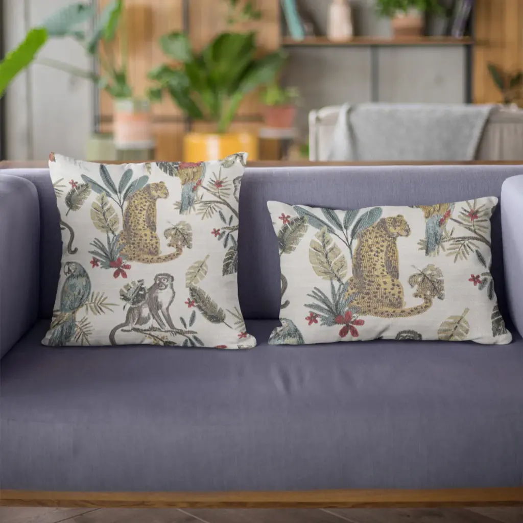 Indulge in the ultimate luxury and romance with our exquisite collection of pillows. Our pillows are more than just a comfortable place to rest your head, they are a symbol of sophistication and elegance. plutus multi-color jungle animal luxury throw pillow. The fabric of this luxury pillow is a blend of Linen.• Colors: Multi-Color• Pillows are Handmade in USA• Double Sided pillow• Invisible zipper enclosure for a tailored look• All seams are over-locked and stitched for a professional finish• Pattern placement may vary slightly• Pillow measurements are seam to seam from the inside• Pillows include • Made in USA• Hypoallergenic Down Alternative Polyfill Insert• Dry Clean recommended• Fabric Content: 79%Viscose/14%Polyester/7%Linen• Pattern: Jungle• Flammability: • Cleaning Code: Spot Clean, and Dry Clean only• Due to monitor differences, actual colors may vary slightly from what appears online.