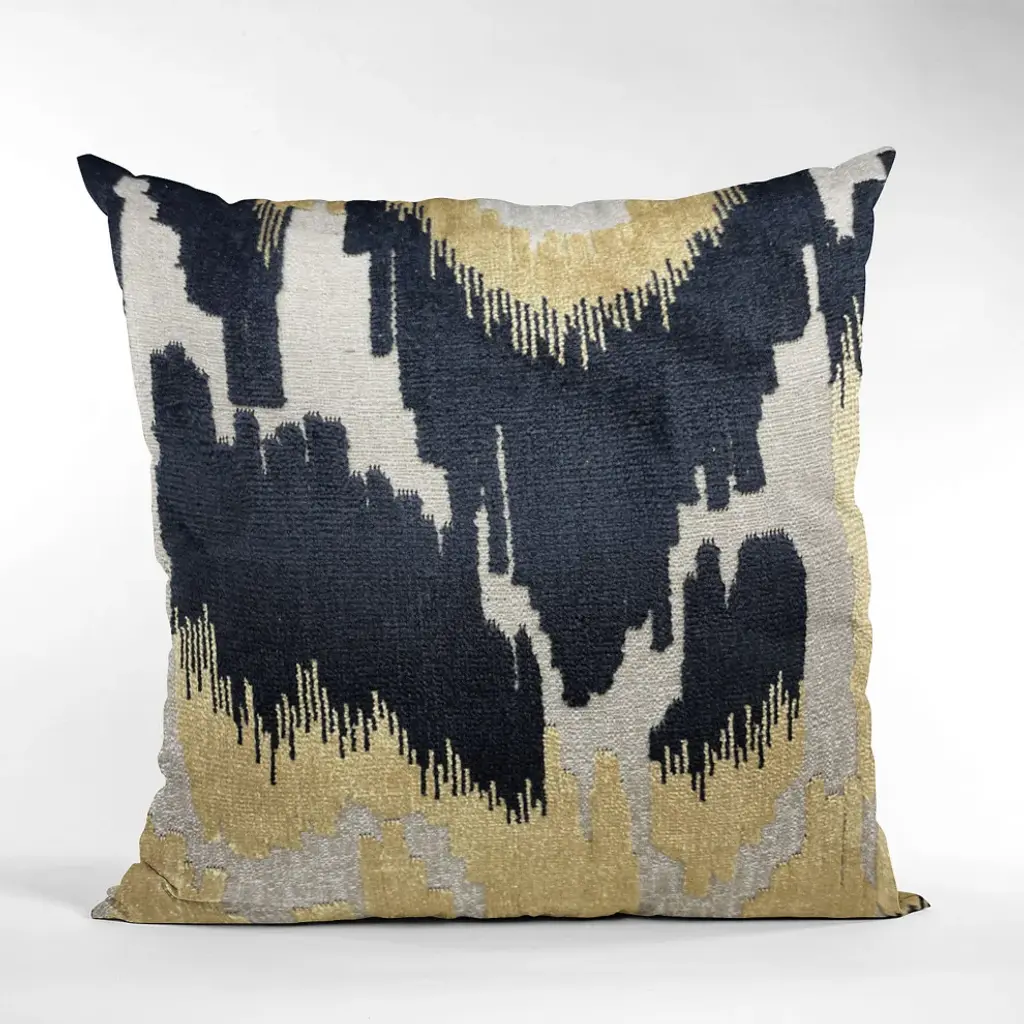 Give your guests and vistors something to think about! Insert included. • Colors: Black, Gold, Cream• Pillows are Handmade in USA• Double Sided pillow• Invisible zipper enclosure for a tailored look• All seams are over-locked and stitched for a professional finish• Pattern placement may vary slightly• Pillow measurements are seam to seam from the inside• Pillows include • Made in USA• Hypoallergenic Down Alternative Polyfill Insert• Dry Clean recommended• Fabric Content: 79%Viscose/14%Polyester/7%Linen• Pattern: Ikat• Flammability: CAL 117-2013, NFPA 260, UFAC I• Cleaning Code: Spot Clean, and Dry Clean only• Due to monitor differences, actual colors may vary slightly from what appears online.