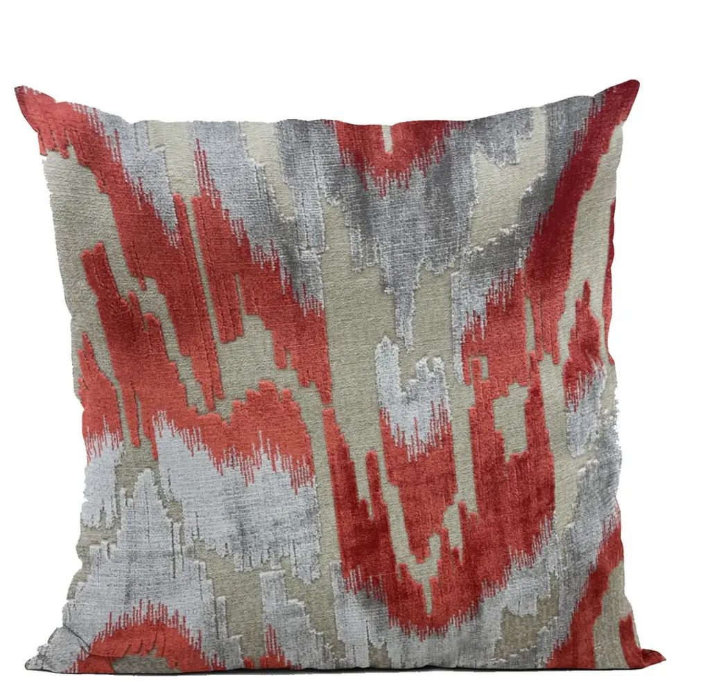Plutus Velvet Glamour Red, Gray Handmade Luxury Pillow, 20"x20"