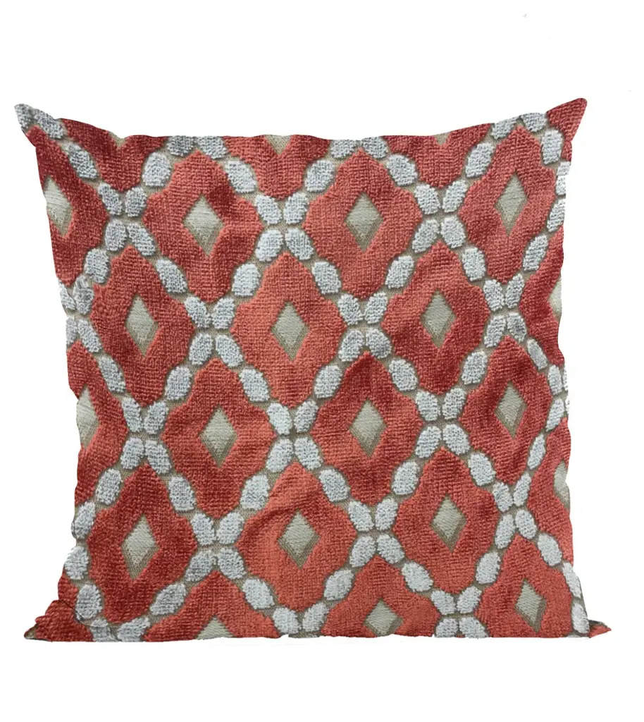 Give your guests and vistors something to think about! Insert included. • Colors: Red, Gray• Pillows are Handmade in USA• Double Sided pillow• Invisible zipper enclosure for a tailored look• All seams are over-locked and stitched for a professional finish• Pattern placement may vary slightly• Pillow measurements are seam to seam from the inside• Pillows include • Made in USA• Hypoallergenic Down Alternative Polyfill Insert• Dry Clean recommended• Fabric Content: 79%Viscose/14%Polyester/7%Linen • Pattern: Diamond• Flammability: CAL 117-2013, NFPA 260, UFAC I• Cleaning Code: Spot Clean, and Dry Clean only• Due to monitor differences, actual colors may vary slightly from what appears online.