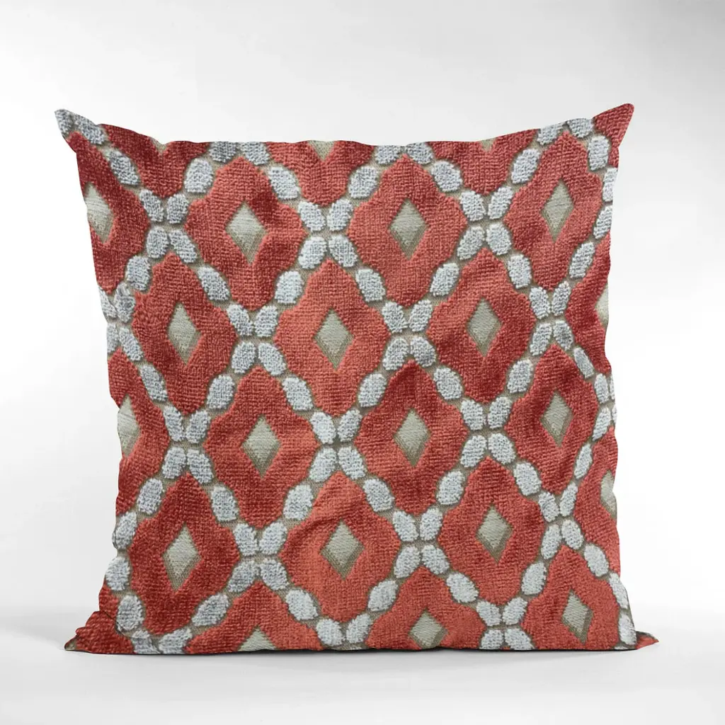 Plutus Velvet Majestic Red, Gray Handmade Luxury Pillow, 24"x24"