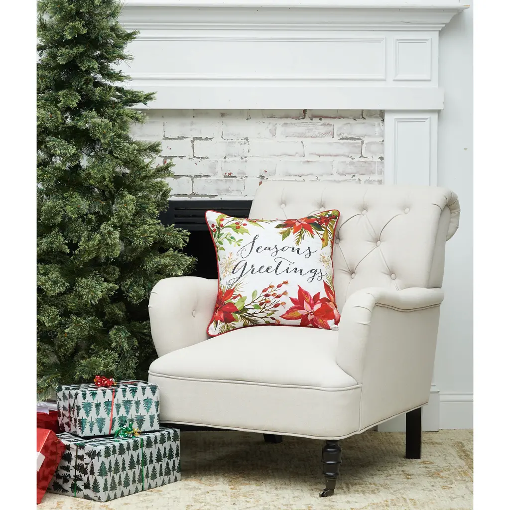 Poinsettia Seasons Greetings Pillow - 18 X 18