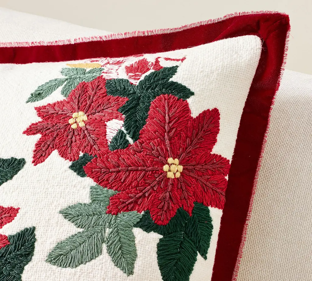 Poinsettia With Velvet Flange Pillow