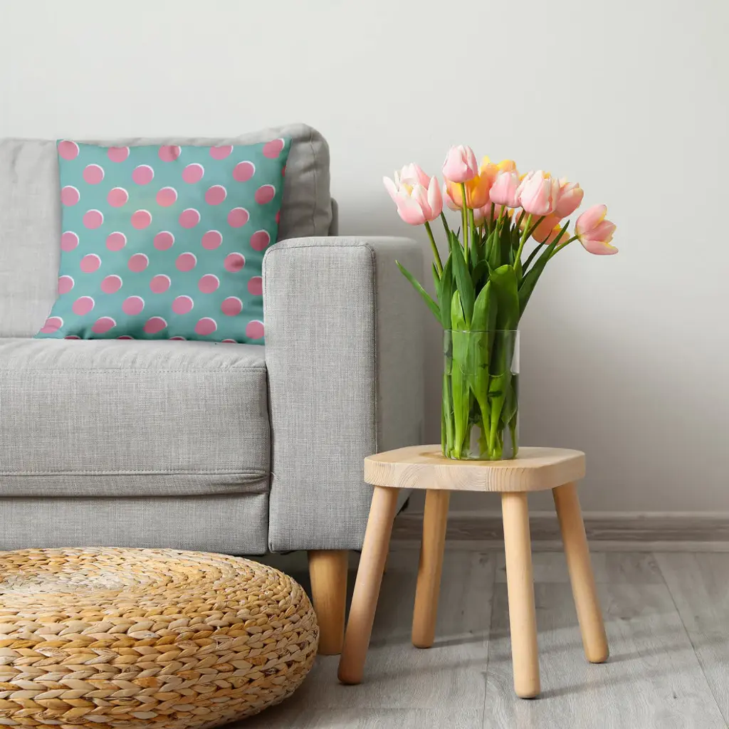 Add color and style with a Polka Dots Pillow from our Girl Power collection. Belive in yourself and dream big while coordinating your decor. This pillow will look great on your bed, sofa or armchair providing comfort while you turn your dreams into reality. This pillow is made of soft spun polyester and is reversible. It is filled with down alternative and is sewn closed. Spot cleaning is recommended. This decorative pillow is printed on both sides and crafted with a soft, durable polyester exterior, and perfectly filled with down alternative for a crisp look and a comfortable sitting experience. It is sewn closed with a knife edge and can be easily spot cleaned or dry cleaned. The colorful and fun desgins of this collection are sure to inspire greatness.