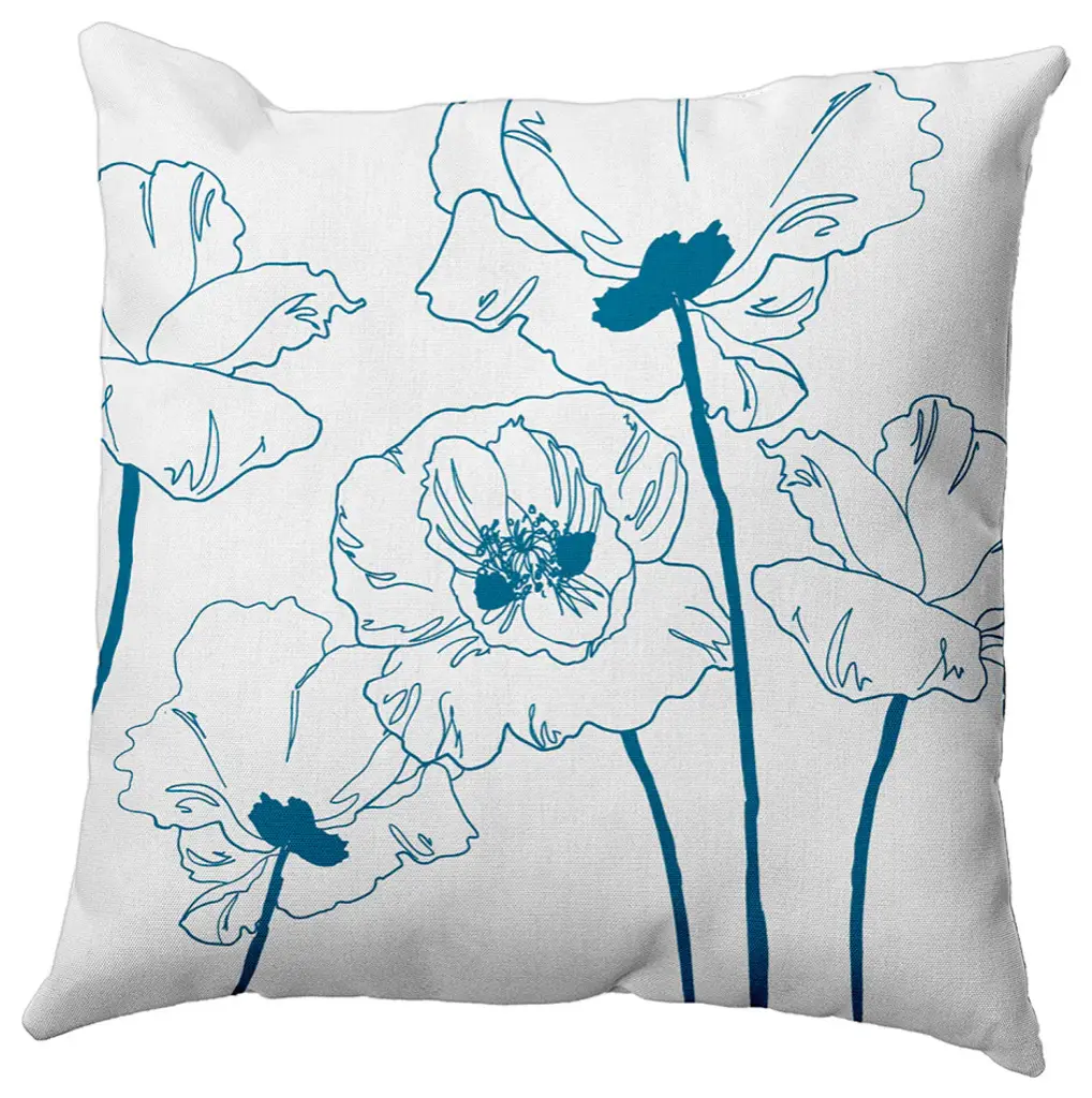 Popping Poppies Decorative Throw Pillow, Teal, 14"x20"