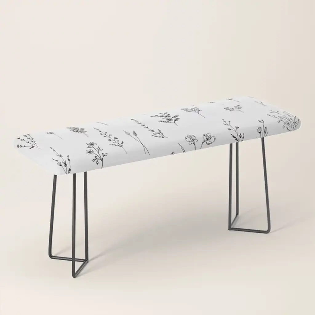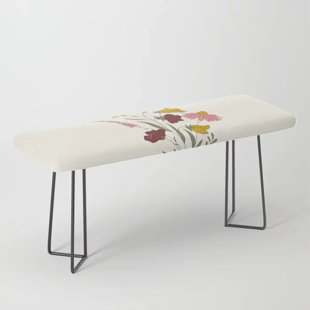 Poppy Flowers Line Art Bench