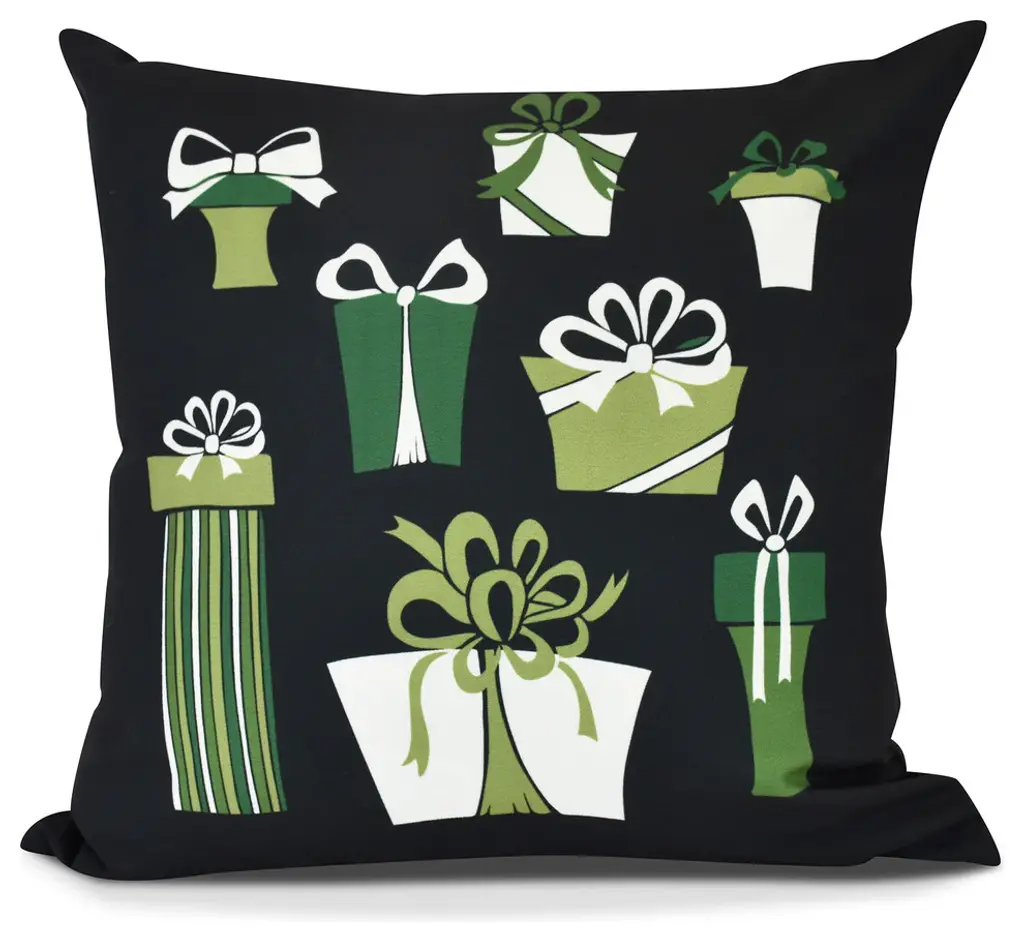 It is the gift giving season! Add E by Design''s Holiday Essence Present Time White Holiday decorative outdoor pillow to your home. It adds the perfect finishing touch to your holiday decor! This festive outdoor pillow is perfect for any porch, deck, patio, or any outdoor space that needs a touch of holiday cheer!