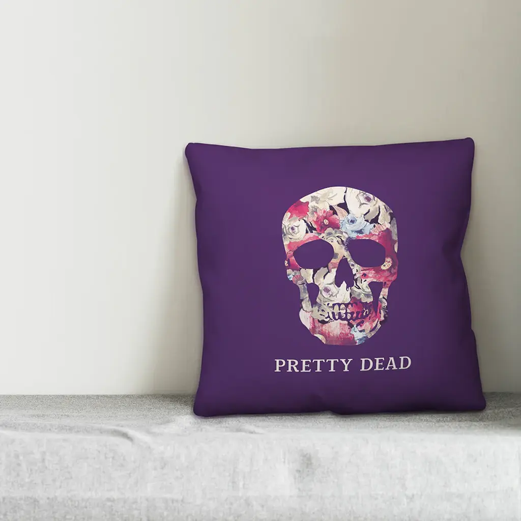 This polyester pillow features a pink floral skull with typography saying "Pretty Dead" to help you add some instant character to your home. Designed in the United States, this product makes a functional and fun accent piece for your home. The result is a stunning accent piece worthy of showcasing in your home. Made to order.