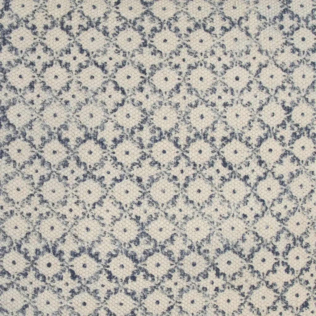 Reminiscent of a vintage print, this Ivory and Blue Square Geometric Throw Pillow captures the intrigue of a hand-stamped pattern of fading blue. This pillow is an ideal addition to your transitional or coastal-style home or office décor. A solid ivory, zippered back allows for easy access so that you can machine wash your pillow. This pillow is finished with a flanged edge.