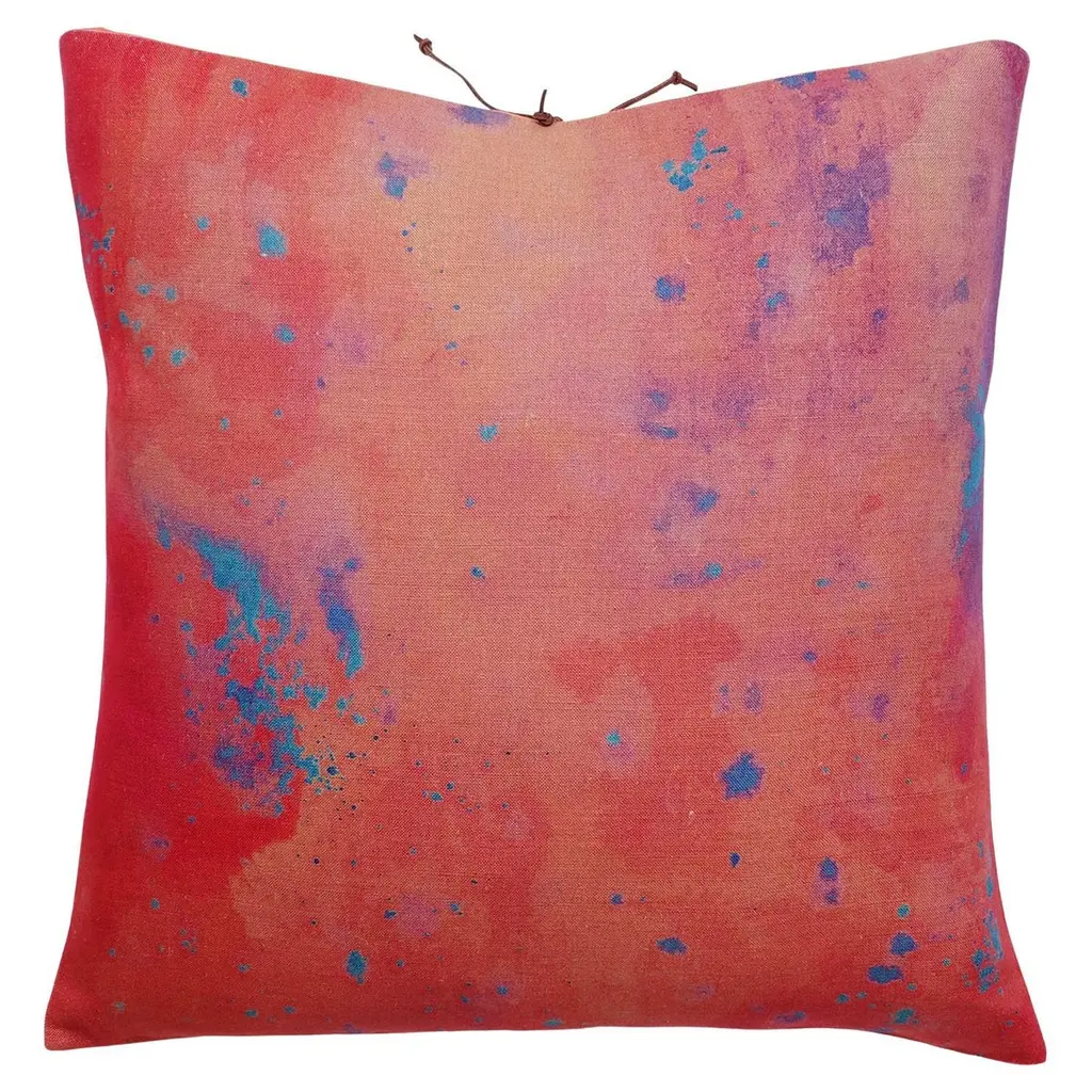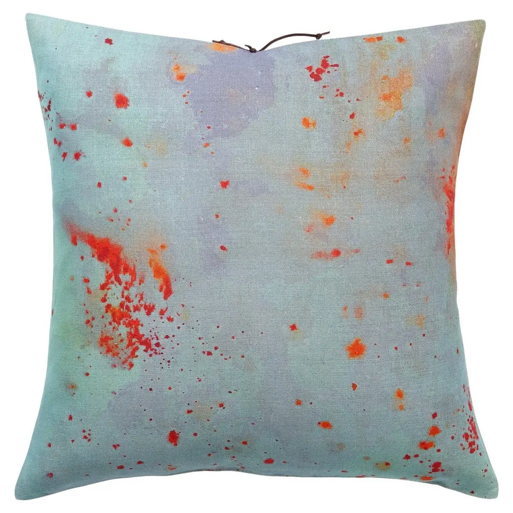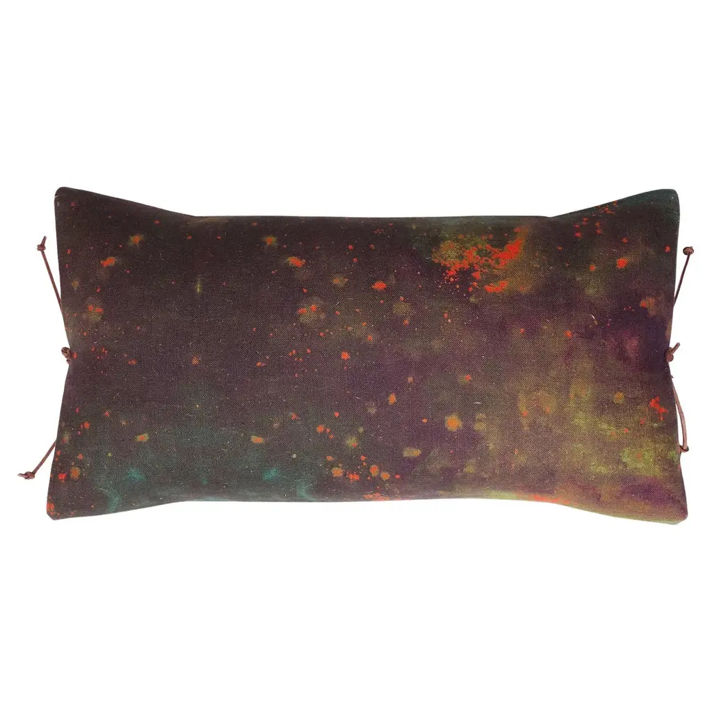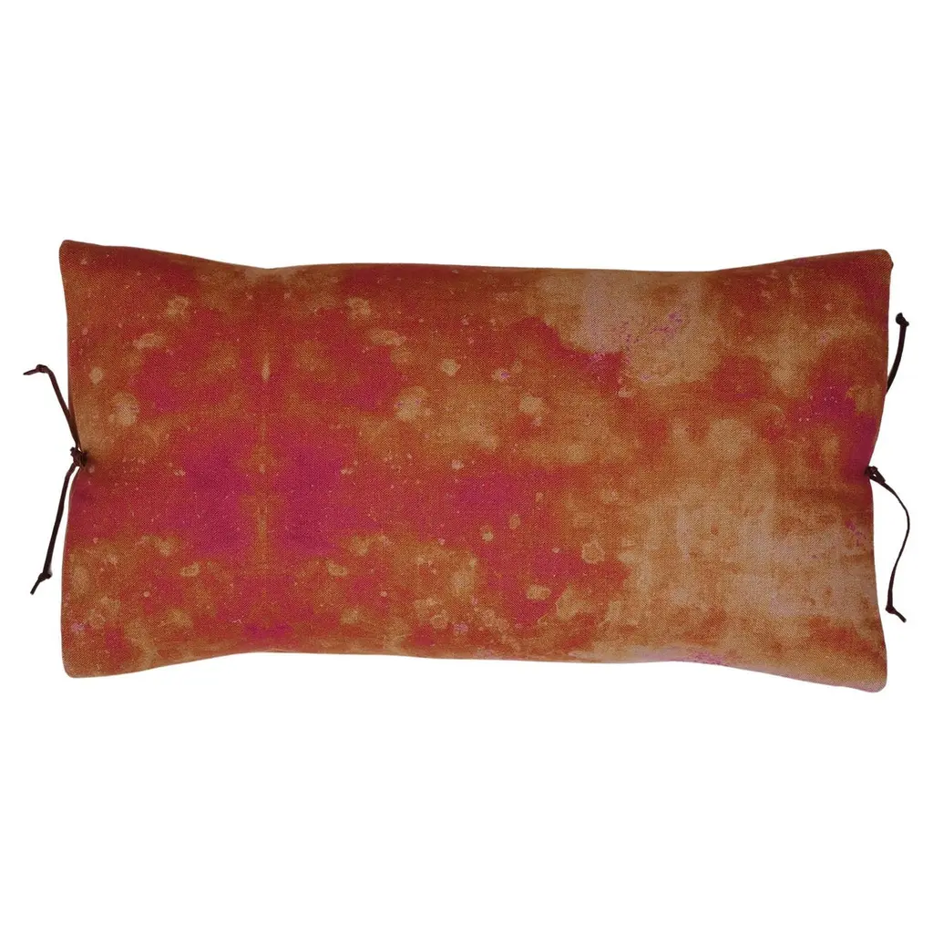 A luxury handmade decorative throw pillow made of printed Belgian linen, great for adding comfort and casual, laid-back style to a contemporary living room, bedroom or lounge. Belgian linen is high quality, durable, naturally made fabric from the flax plant. The modern printed graphic is from an original watercolor painting by Michele Varian. The cushioncover has a functional and decorative leather tie closure, and silk insert flap. The traditional knot tie closure at the top ensures that there are no hard elements on our pillows like buttons or zippers. The pillow includes a generously filled feather and down blend insert. This toss cushion is designed by Michele Varian and handcrafted in NYC.Product details:Belgian linenLeather tie closureRemovable American-made insert included 95%feather 5% downPlease inquire regarding a hypoallergenic insert optionMeasure: 12 inches x 22 inchesDry clean removable cover onlyMade in NYC.