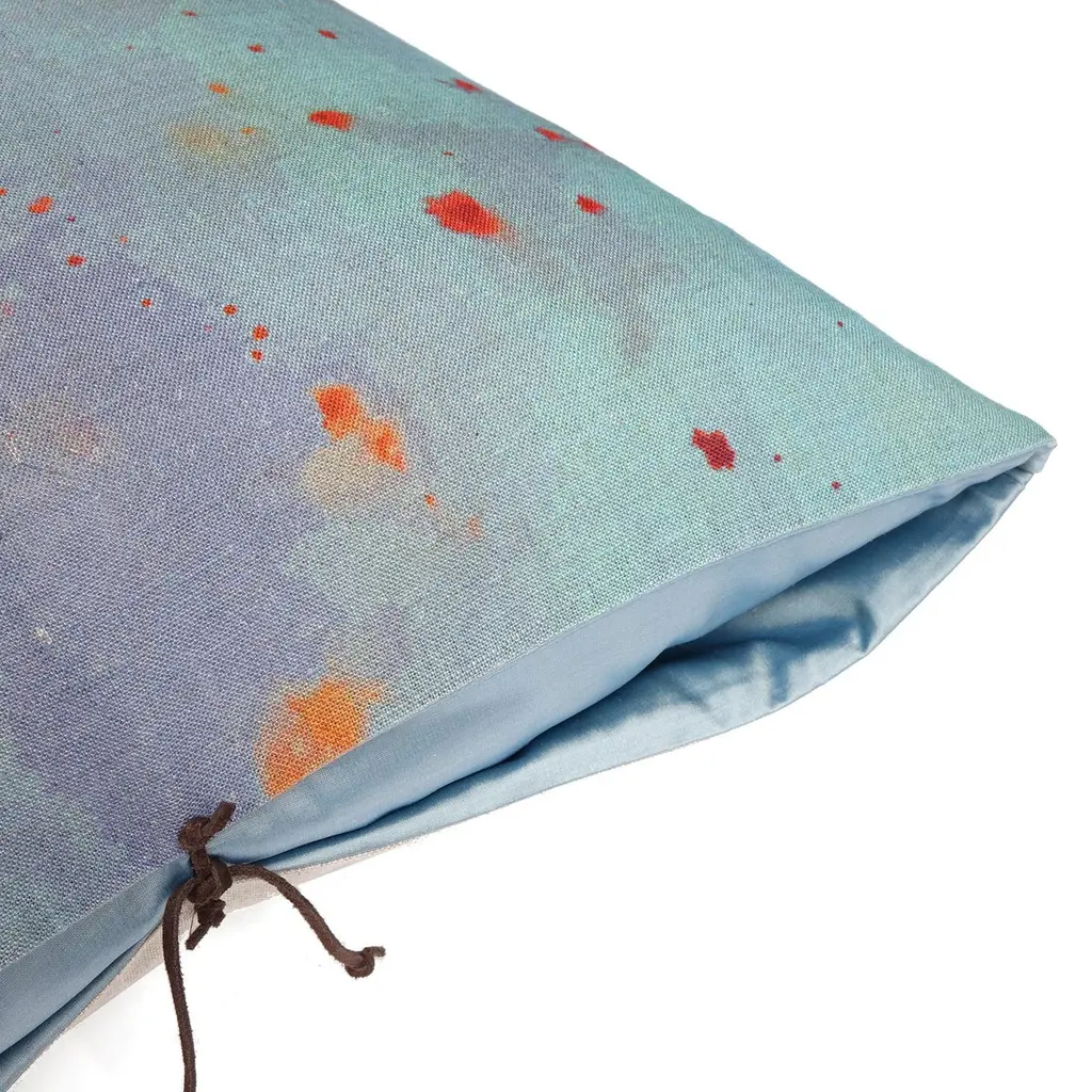 A luxury handmade decorative throw pillow made of printed Belgian linen, great for adding comfort andcasual, laid-back style to a contemporary living room, bedroom or lounge. Belgianlinen is high quality, durable, naturally made fabric from the flax plant. The modernprinted graphic is from an original watercolor painting by Michele Varian. The cushion cover has a functional and decorative leather tie closure, and silk insertflap. The traditional knot tie closure at the top ensures that there are nohard elements on our pillows like buttons or zippers. The pillow includes agenerously filled feather and down blend insert. This tosscushion is designed by Michele Varian and handcrafted inNYC.Product detailsBelgian linenLeather tie closureRemovable American-made insert included 95%feather 5% downPlease inquire regarding a hypoallergenic insert optionMeasures: 22 inches x 22 inchesDry clean removable cover onlyMade in NYC.