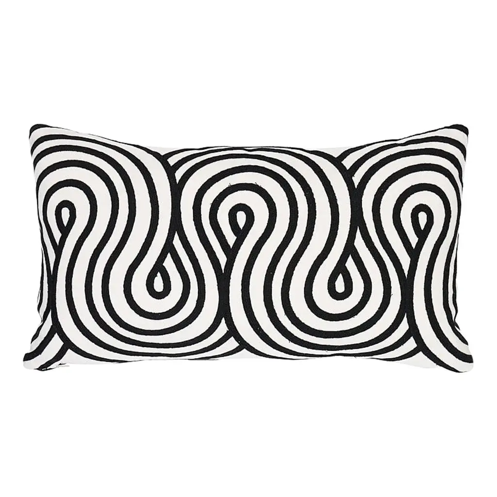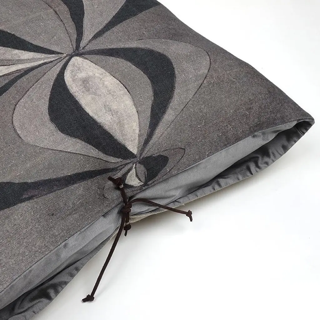 A luxury handmade decorative throw pillow made of printed Belgian linen, great for adding comfort and casual, laid-back style to a contemporary living room, bedroom or lounge. Belgian linen is high quality, durable, naturally made fabric from the flax plant. The modern printed graphic is from an original watercolor painting by Michele Varian. The cushioncover has a functional and decorative leather tie closure, and silk insert flap. The traditional knot tie closure at the top ensures that there are no hard elements on our pillows like buttons or zippers. The pillow includes a generously filled feather and down blend insert. This toss cushion is designed by Michele Varian and handcrafted in NYC.Product details:Belgian linenLeather tie closureRemovable American-made insert included 95%feather 5% downPlease inquire regarding a hypoallergenic insert optionMeasure: 12 inches x 22 inchesDry clean removable cover onlyMade in NYC.