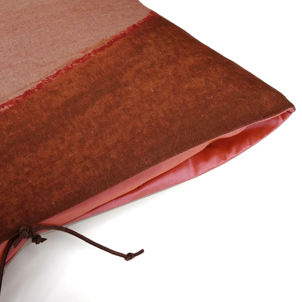 A luxury handmade decorative throw pillow made of printed Belgian linen, great for adding comfort and casual, laid-back style to a contemporary living room, bedroom or lounge. Belgian linen is high quality, durable, naturally made fabric from the flax plant. The modern printed graphic is from an original watercolor painting by Michele Varian. The cushioncover has a functional and decorative leather tie closure, and silk insert flap. The traditional knot tie closure at the top ensures that there are no hard elements on our pillows like buttons or zippers. The pillow includes a generously filled feather and down blend insert. This toss cushion is designed by Michele Varian and handcrafted in NYC.Product details:Belgian linenLeather tie closureRemovable American-made insert included 95%feather 5% downMeasure: 23 inches x 23 inchesDry clean removable cover onlyMade in NYC.