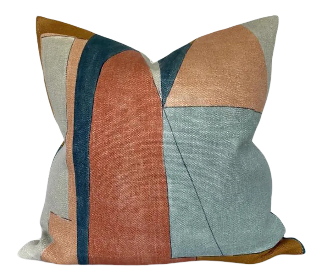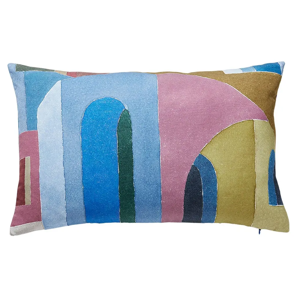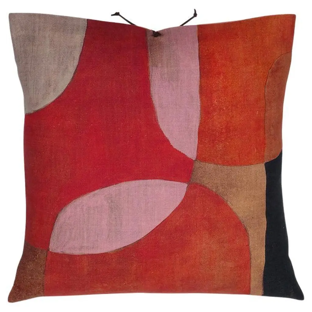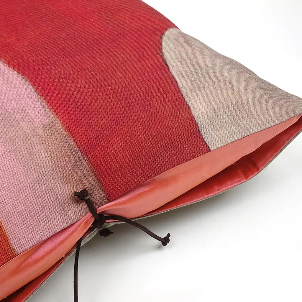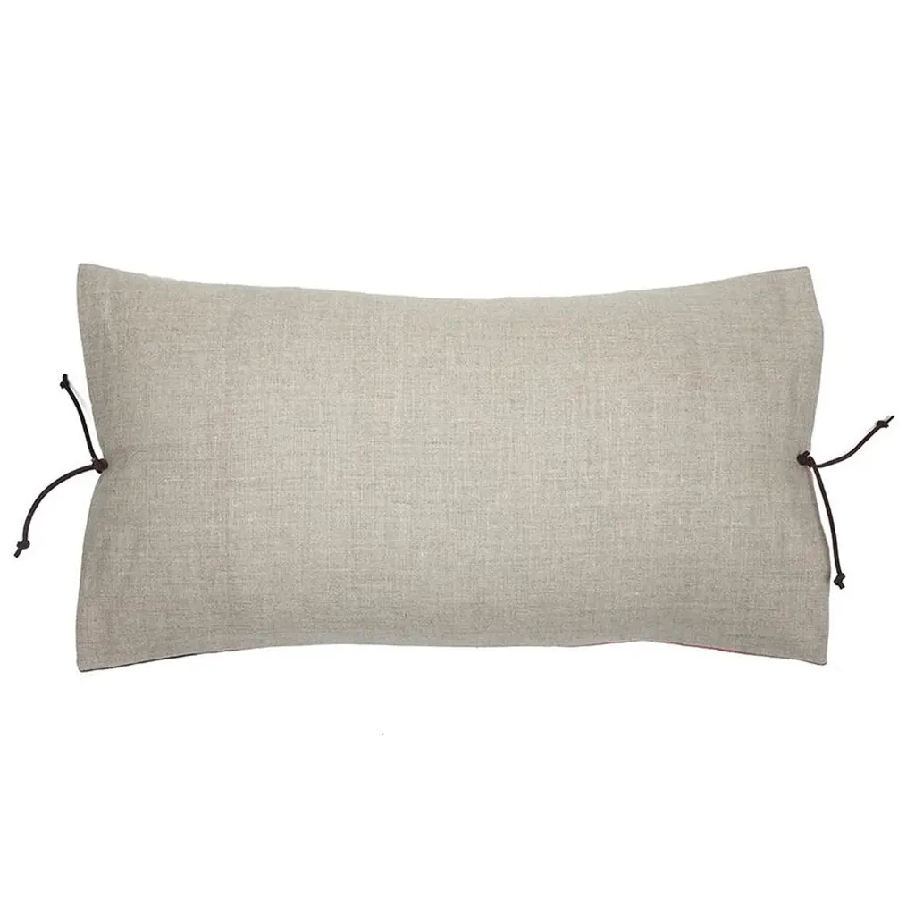 A luxury handmade decorative throw pillow made of printed Belgian linen, great for adding comfort and casual, laid-back style to a contemporary living room, bedroom or lounge. Belgian linen is high quality, durable, naturally made fabric from the flax plant. The modern printed graphic is from an original watercolor painting by Michele Varian. The cushioncover has a functional and decorative leather tie closure, and silk insert flap. The traditional knot tie closure at the top ensures that there are no hard elements on our pillows like buttons or zippers. The pillow includes a generously filled feather and down blend insert. This toss cushion is designed by Michele Varian and handcrafted in NYC.Product details:Belgian linenLeather tie closureRemovable American-made insert included 95%feather 5% downPlease inquire regarding a hypoallergenic insert optionMeasure: 12 inches x 22 inchesDry clean removable cover onlyMade in NYC.