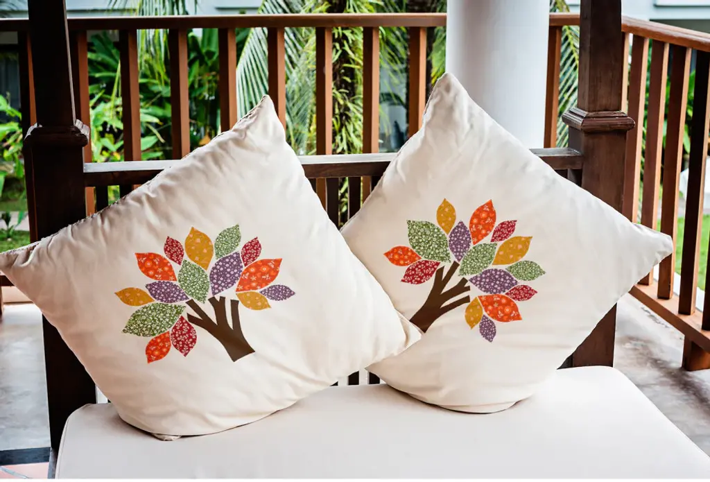 Printed Quilt Tree Indoor/outdoor Throw Pillow