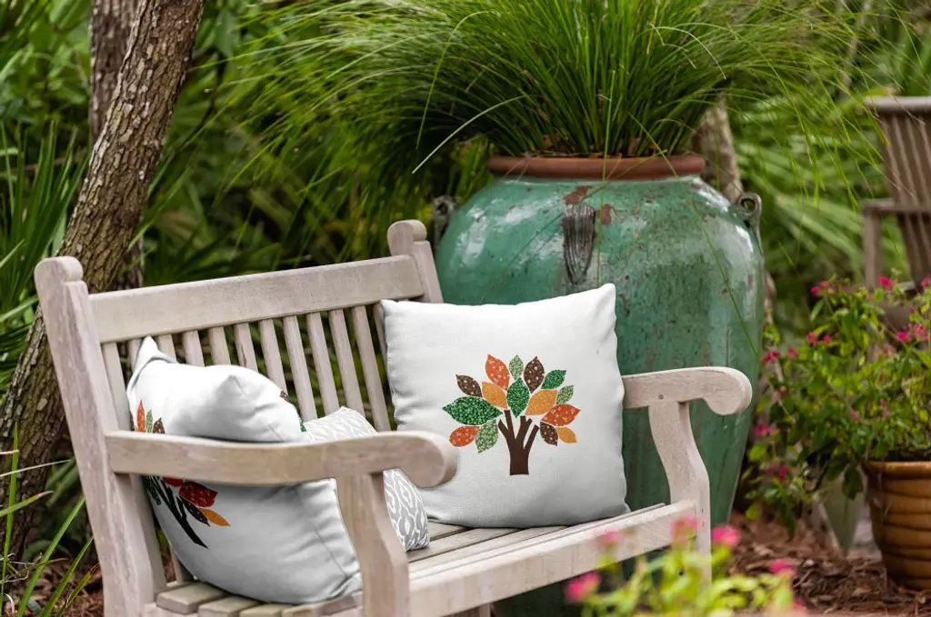Change up your home decor for the fall season with the Printed Quilt Tree Pillow from our Flipping for Fall Collection. This indoor/outdoor pillow will add the earthy aesthetics to your porch, deck or patio that you''ve been looking for! This decorative pillow is printed on both sides and crafted with a soft, durable polyester exterior, and filled with down alternative for a crisp look and a comfortable sitting experience. The fabric is resistant to weather, mold, and mildew so you can accentuate your indoor or outdoor decor. It is sewn closed with a knife edge and can be easily spot cleaned or dry cleaned. The warm tones of this collection will envelop you in comfort and delight you throughout the season.