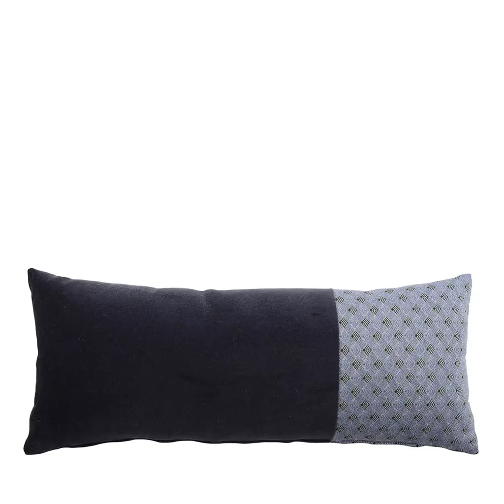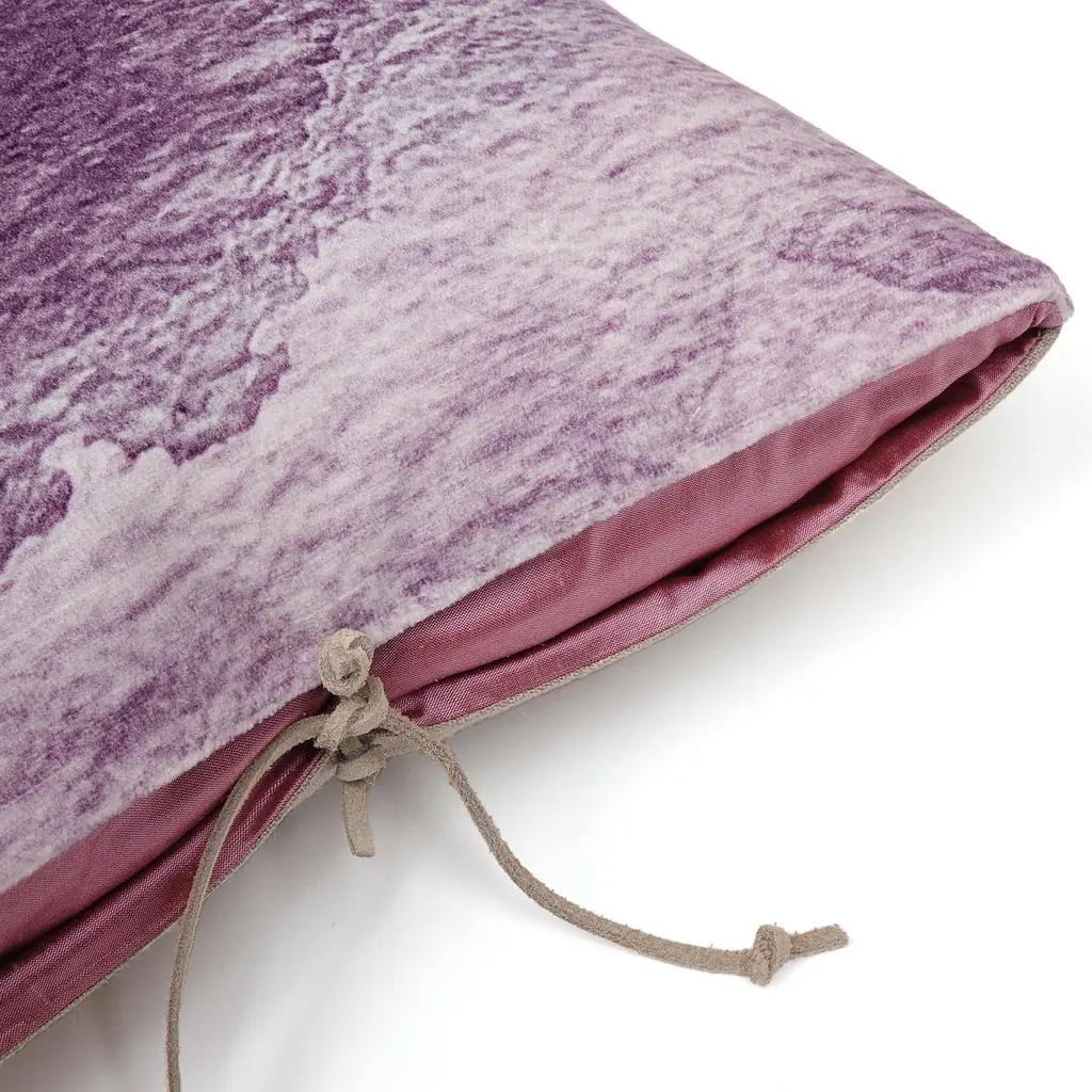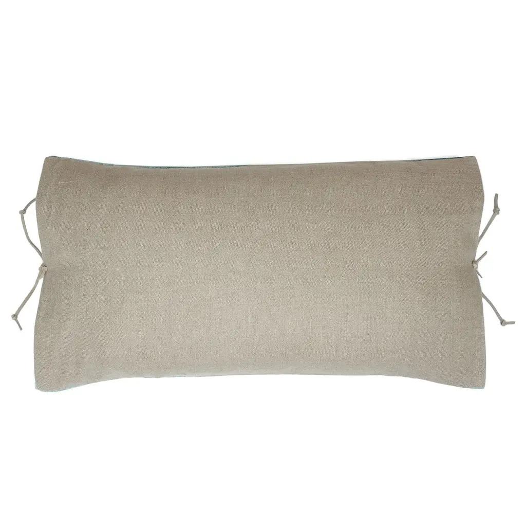 A luxury handmade decorative throw pillow made of printed cotton velvet front and solid Belgian linen back, great for adding comfort and casual, laid-back style to a contemporary living room, bedroom or lounge. Cotton velvet is a high quality, durable, naturally made fabric. The modern printed graphic is from an original watercolor painting by Michele Varian. The cushion cover has a functional and decorative leather tie closure, and silk insert flap. The traditional knot tie closure at the top ensures that there are no hard elements on our pillows like buttons or zippers. The pillow includes a generously filled feather and down blend insert. This toss cushion is designed by Michele Varian and handcrafted in NYC.Product details:Belgian linenLeather tie closureRemovable American-made insert included 95%feather 5% downMeasure: 12 inches x 22 inchesDry clean removable cover onlyMade in NYC.