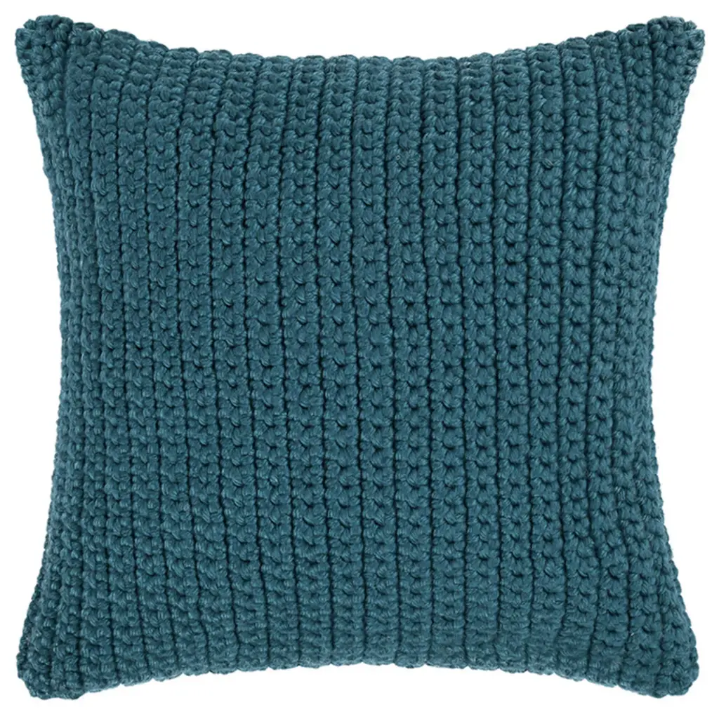 Give your outdoor space a hint of traditional coziness with this comfy pillow featuring a handwoven knit pattern. Treated with an outdoor finish to resist fading and moisture, this durable piece makes a classic statement in any setting.100% PolyesterHandwoven knitted styleDyed and treated with an outdoor finish for performance level durabilityDesigned to resist moisture and fadingHidden YKK Zipper100% Polyester insert Knife edge Finish100% Polyester Solid Back Solid Transitional Spot clean with a clean damp cloth. 100% Polyester fill.Pillow fluff technique: Hold pillow at its edges. Push in pillow towards its center and pull-out pillow toward its edges. Repeat the inward-outward movement until pillow feels plump at center.