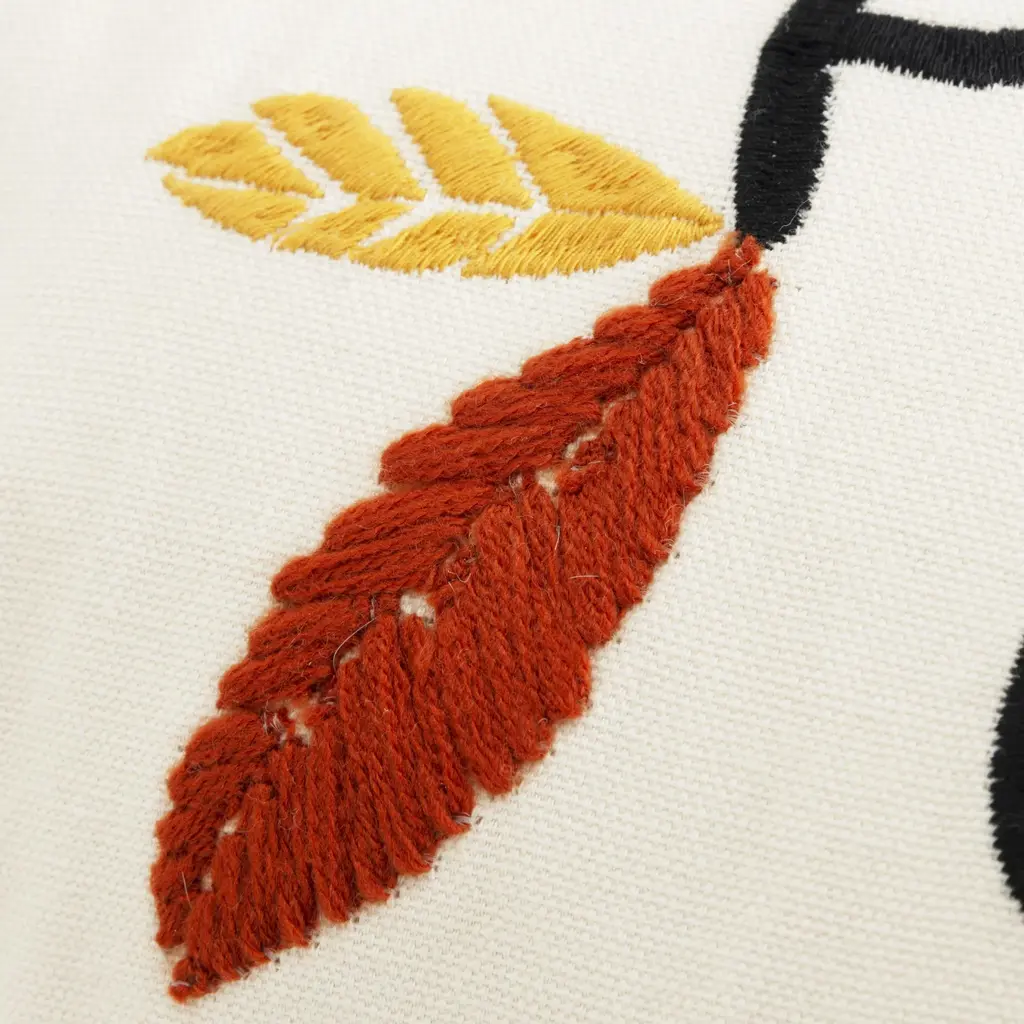 Introducing the "Pumpkin Spice Season" accent pillow; a delightful addition to your harvest-inspired decor to celebrate the flavor of the season with a bit of fun. Measuring 20" x 20", this pillow is crafted from 100% premium cotton duck fabric, ensuring a soft and cozy feel. The "Pumpkin Spice Season" sentiment is beautifully presented in applied chord lettering and embroidery on the front, creating a heartwarming focal point that captures the tasty essence of the fall season. Crafted with attention to detail, the embroidery features a combination of both machine and hand embroidery styles using heavy cotton yarns for a heavy texture and warmth of dimension. The Ivory, Black, Gold and Terracotta hues create a harmonious color palette that will complement a variety of home decor styles. The matching solid cotton back ensures a polished appearance from all angles, that's easy to fill. Embrace the cozy and nostalgic feeling of the season with the "Pumpkin Spice Season" accent pillow. With a blend of farmhouse charm and impeccable craftsmanship, this piece is a perfect choice for adding a touch of autumn warmth and personality to your living space.
