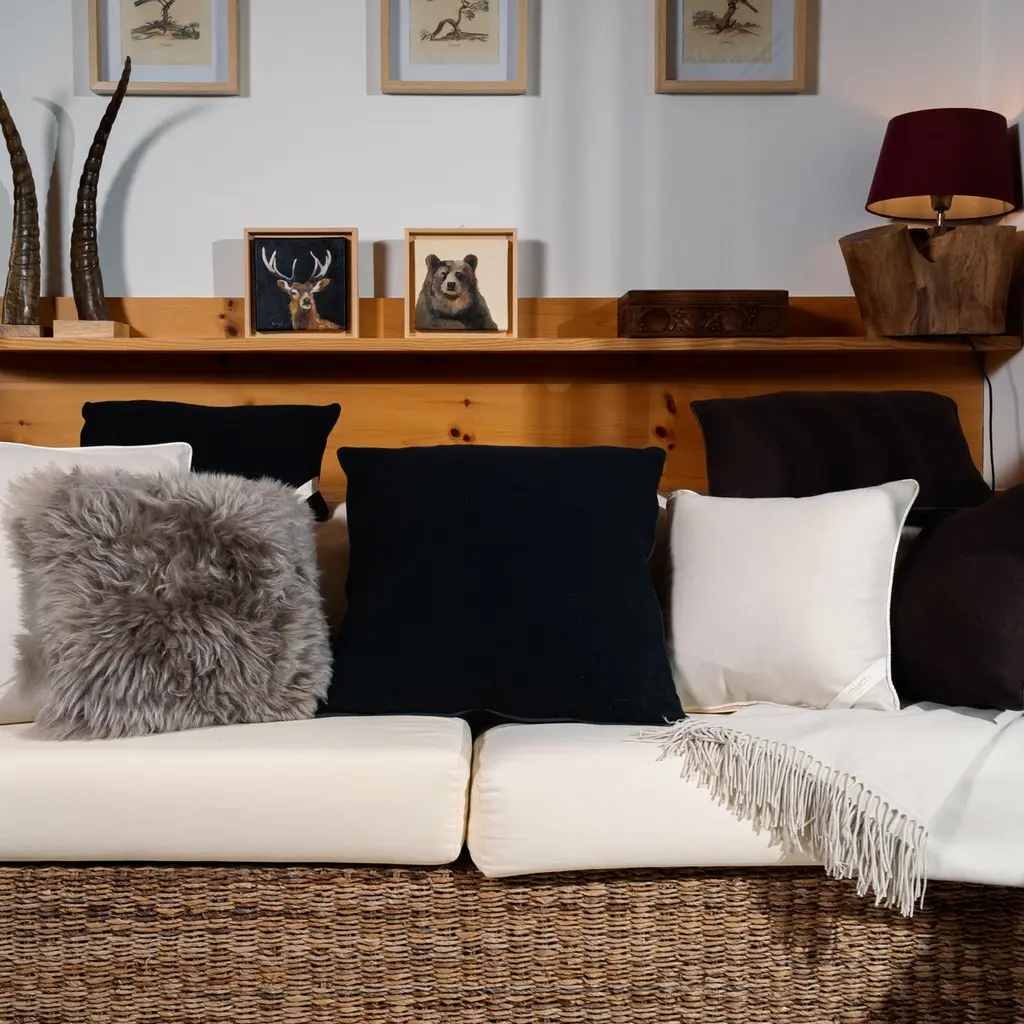 Pure Cashmere Black Large Cushion By Muchi Decor, Made In Italy
