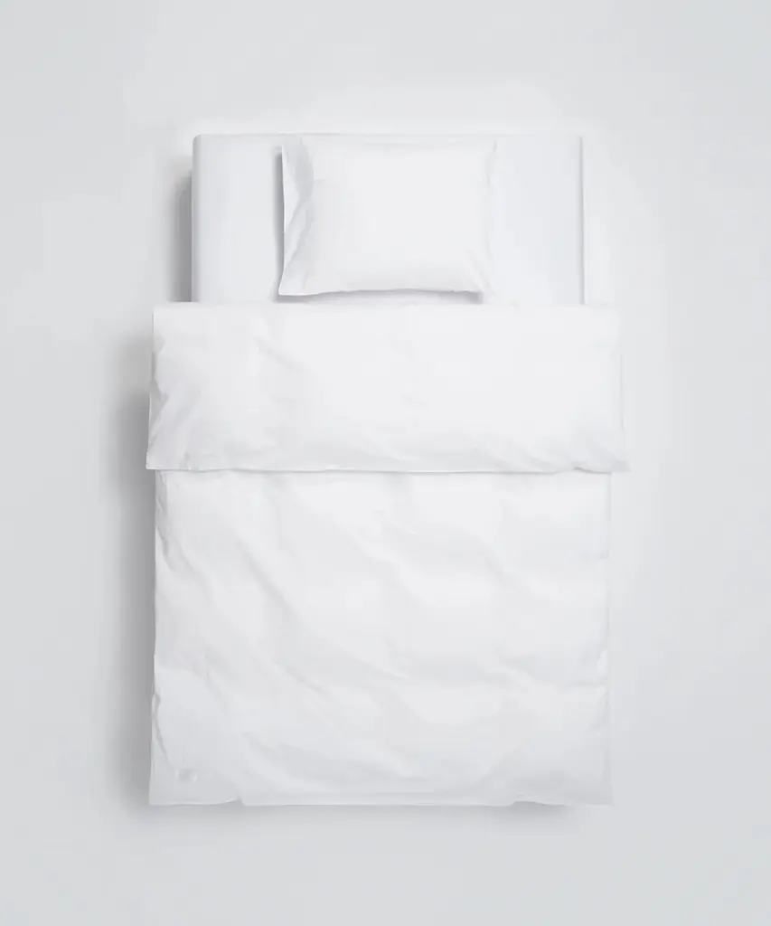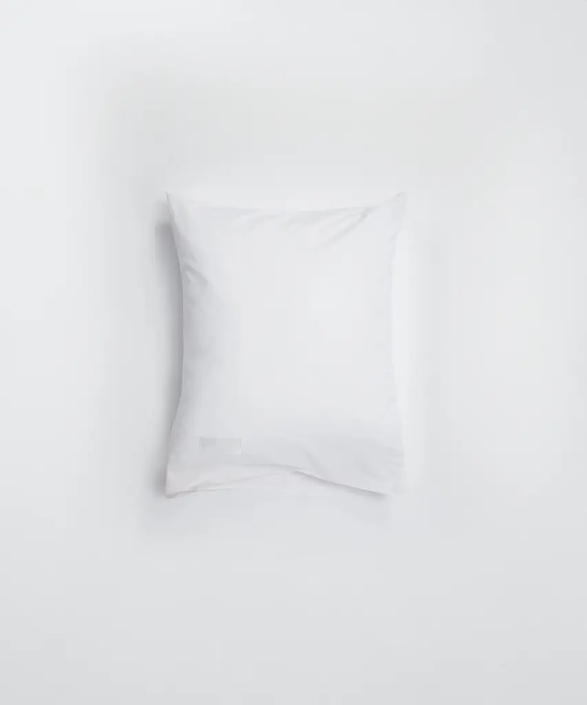 Pillow case in crisp luxuriously soft white cotton poplin and Poplin. The Pure collection is sleek and minimal, designed with as few visible stitches as possible to infuse a sense of calm in the bedroom. Produced in Portugal by Magniberg.