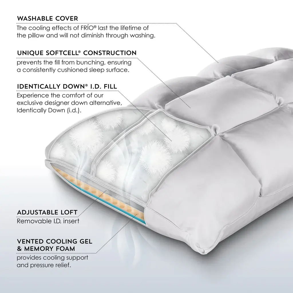 Scrunch up to cool comfort with the Sub-0 SoftCell Chill pillow. This reversible pillow offers individual pockets filled with a down-like material for extra support and comfort on one side. The other side has gel-covered memory foam. Plus, the FRIO® rapid chill cooling fibers funnel heat away from your body and provide a cooler sleep surface. The locking zippered machine washable cover resists allergens and dust mites for a healthier sleep.