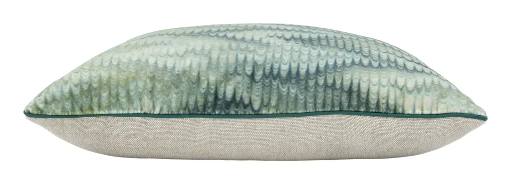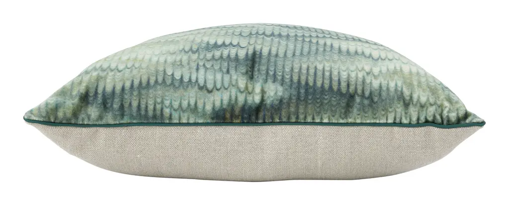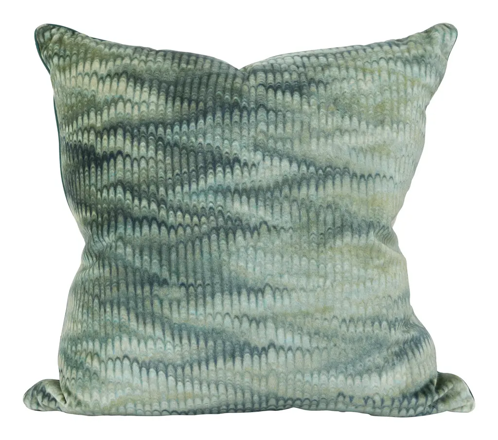 Add a touch of vintage-inspired elegance to your space with our Pyrenees Pillow. This lovely layer features a luxe velvet front printed with a feathered marble motif in lush shades of green, which draws its inspiration from the marbleized pages found at the beginnings and ends of antique books. It’s finished with a neutral linen backing fabric, matching emerald green silk piping, a hidden zipper closure and a soft down and feather pillow insert for a plush feel. With its opulent texture and chic, rippling pattern, Pyrenees is all you need to make a sofa or armchair instantly more sophisticated — although we also love it mixed in with other classic prints in similar hues. •viscose and cotton velvet blend•neutral linen backing fabric •green silk piped edges •hidden zipper closure •down and feather insert Dimensions •small: 14" x 20" •large: 22" x 22"