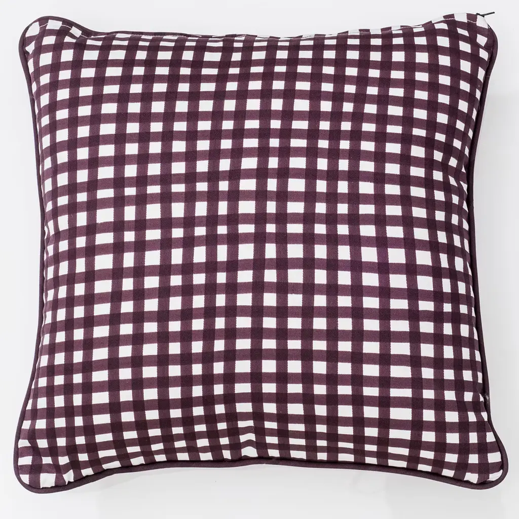 This elegant cushion has a down insert with a cover in 100% cotton decorated using the pigment printing technique with a striking pattern of small maroon squares.