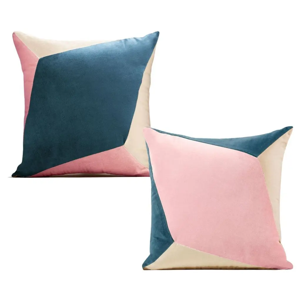 Quartz Pink And Dry Green - Set Of 2 Velvet Deluxe Handmade Throw Pillows