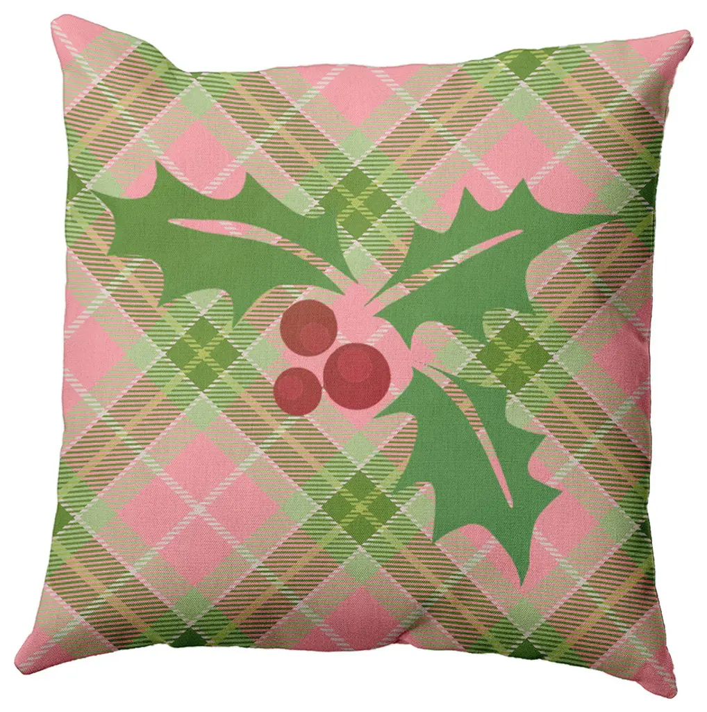 Quilted Christmas Indoor/outdoor Throw Pillow, Pink Icing, 18"x18"
