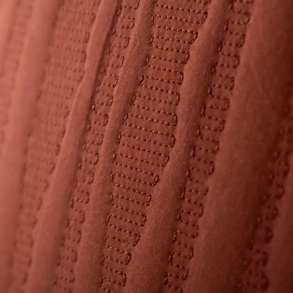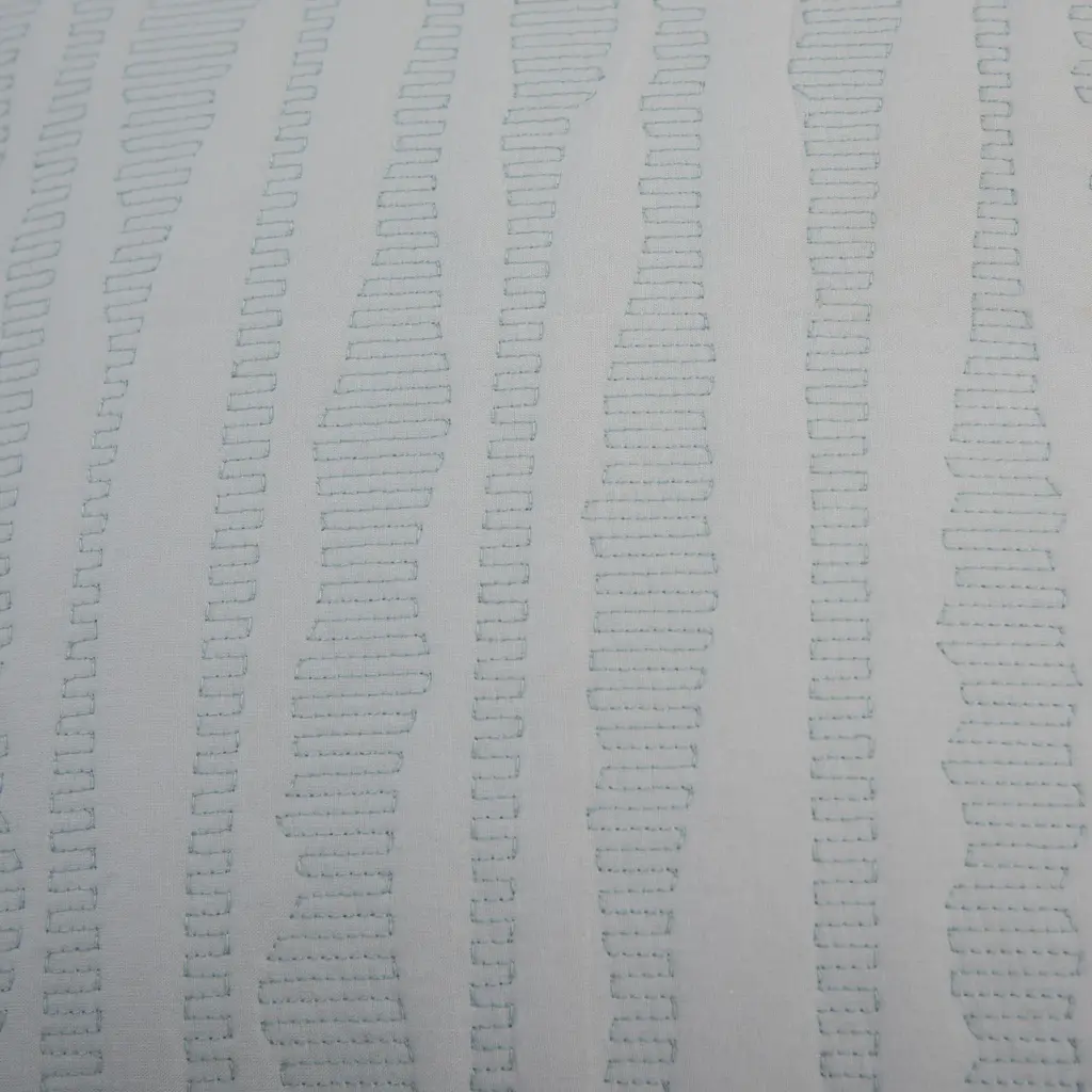 Add a touch of refined comfort to your space with this 20 x 20 throw pillow, crafted from soft cotton voile, blending elegance with modern or cottage-inspired home decor. Its quilted construction features a delicate stripe pattern with irregular widths, creating a textured look enhanced by tonal stitching. The color adds a calming, sophisticated touch, making it a versatile addition to any aesthetic. The knife-edge finish and double-seamed detailing ensure durability and a clean, polished appearance. A solid coordinating back with a hidden bottom zipper completes the design, making this pillow as practical as it is stylish - perfect for adding a refined yet cozy accent to your living space.