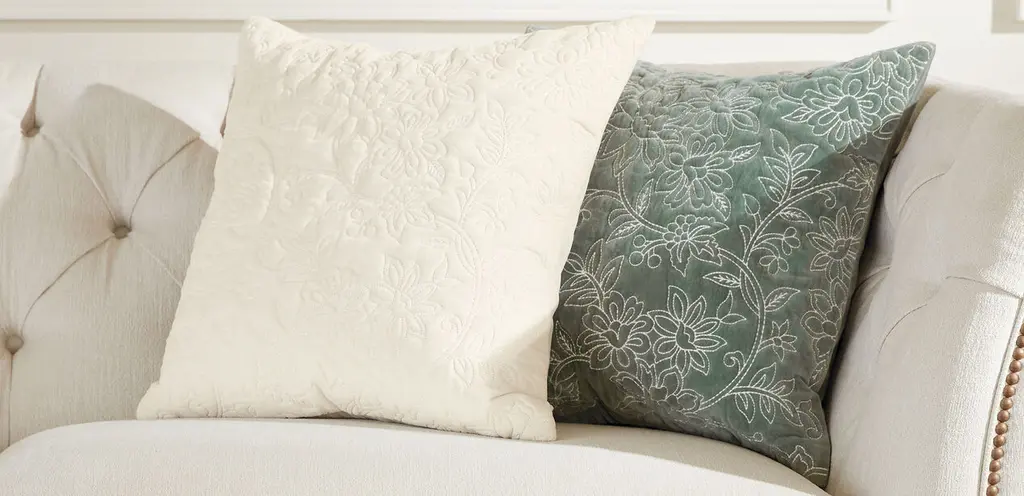 Beautifully stitched vine details, quilted texture, and a lush velvety feel make our Quilted Velvet pillow a standout in any pillow ensemble. Its ivory tone makes it a versatile fit in almost any pillow grouping.
