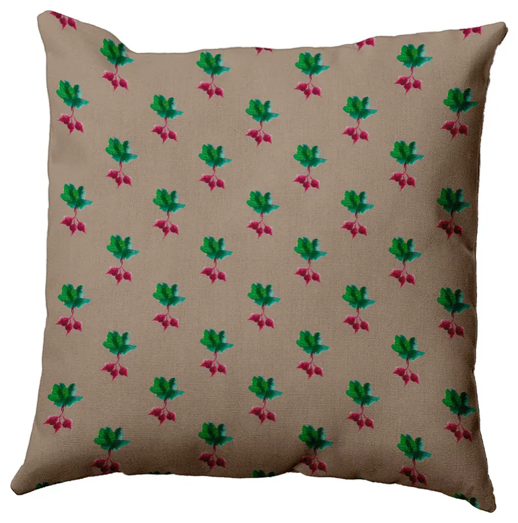 Welcome the abundance of the garden into your home with a Radishes Pattern Pillow from our Farmers'' Market Collection. This indoor/outdoor pillow will brighten your porch, deck or patio with its fresh, quality design! This decorative pillow is printed on both sides and crafted with a soft, durable polyester exterior, and filled with down alternative for a crisp look and a comfortable sitting experience. The fabric is resistant to weather, mold, and mildew so you can accentuate your indoor or outdoor decor. It is sewn closed with a knife edge and can be easily spot cleaned or dry cleaned. This entire collection is sure to unearth the warm and inviting energy that you''ve been looking for.