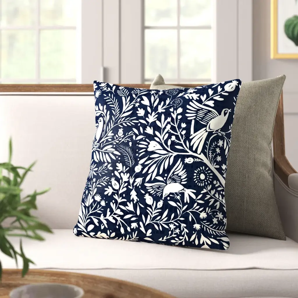 Add a pop of color and personality to your outdoor space with this versatile and weather-resistant throw pillow. Crafted from 100% polyester, it features a reversible navy and white toile pattern that complements various styles. The pillow cover includes a zipper closure, making it easy to remove and spot clean when needed. Filled with polyester for a cozy feel, this square accent pillow is a delightful addition to your patio, deck, or poolside furniture. So, go ahead and let your outdoor space shine with a touch of timeless charm.