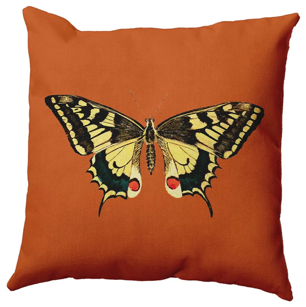 Let your decor take a walk on the wild side with our Rare Swallowtail Pillow from our Animal Magnetism Collection. This eye catching animal print indoor/outdoor pillow will add fun and style to your porch, deck or patio. This decorative pillow is printed on both sides and crafted with a soft, durable polyester exterior, and filled with down alternative for a crisp look and a comfortable sitting experience. The fabric is resistant to weather, mold, and mildew so you can accentuate your indoor or outdoor decor. It is sewn closed with a knife edge and can be easily spot cleaned or dry cleaned. These designs will enhance your home with a ferocious passion you''re sure to love.